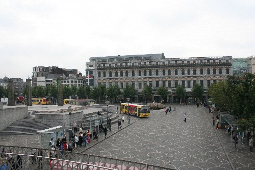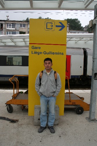まず最初に着いたのは、リエージュ・ギュレミン駅。 ホームに着いたそうそうすごい大きな荷物を二つかかえた女がフランス語で話しかけてく る。フランス語なので何を言っているか分からないが、自分の荷物を駅舎まで運べとでも言っていたのだろうか? これから隣のホームで電車を乗り換えねばな らないので無視する。そうするとものすごい形相で怒っていた。あー、なんでフランス語圏の人って感じが悪い人が多いんだろう。困った顔してお願いするなら まだしも、持って当然だみたいな態度で接してくるから嫌なんだよなあ、フランス語圏の人は・・・。 電車を乗り換えてリエージュの街の中心の駅へ。6分ほどで着く。 街の中心街へ近いリエージュ・パレ駅。 |