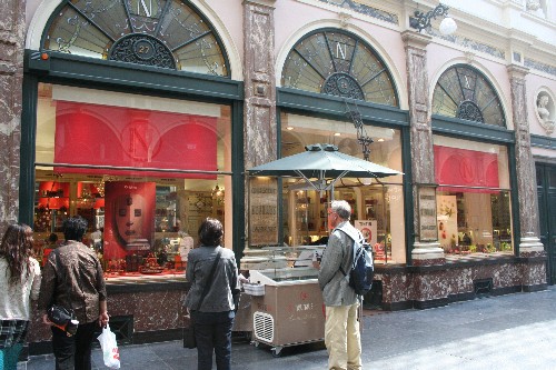 ギャルリー・サンテュベール アールヌーボー様式のアーケード街。日本でアーケードというといけてない商店街を連想してしまうが、こことミラノのものは豪華な風情だ。完成したのは、1847年とのこと、歴史あるアーケード街だけあり老舗の高級店が多い。ガラスの天井に青空が美しい。 朝と日曜は空いているが、普段はものすごい混雑。 ノイハウス ギャルリー内にある王室御用達のチョコレート店「ノイハウス」。日本でもデパ地下にあるし、銀座には路面店もある。 日本との違いは、苺などのフルーツをその場でチョコレート・コーティングしてくれる屋台が出ていたりするところかな。 ベルギー王室御用達のチョコレート店は、4つ。超有名なゴディバに、ノイハウス、ガレ、マリー。 イロ・サクレ地区 ブリュッセルの食い倒れ横丁。歩道にびっしにテーブルと椅子が並べられている。地元の人も通う美味しくてリーズナブルな店もあるそうだが、多くは観光客目当ての高い店。呼び込みしている店は、ぼったくるらしく注意して店選びをしないとならない。 ヌーブ通り ブリュッセル一賑やかな通り。大きなデパートのINNO、ヨーロッパではおなじみのH&M、HEMA、ZARA、C&Aなどカジュアルな店が多く、日本でいう渋谷みたいな所か。若者がとても多い通り。 CITY2という大きなショッピングセンターがあり、地下にカルフール系スーパーGBがある。 |