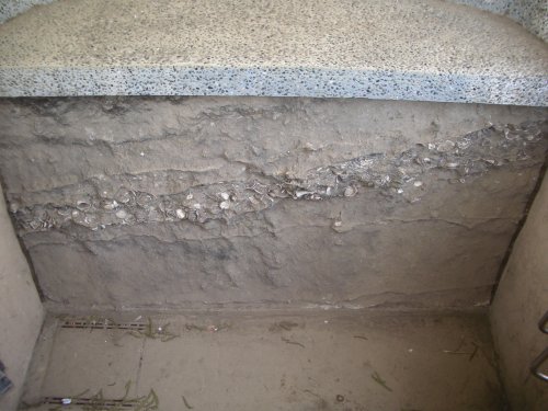 本日は、大森に出没。 大森と言えば、大森貝塚。東海道線の車窓からも見える貝塚跡、歴史の教科書でもお馴染みのこの場所、実はまだ行ったことがなかったの。 期待に胸をふくらませ、行ってみたら、あら碑だけ? がっかりして駅へ戻ろうとしたら、「この先、品川区にも大森貝塚はあります」の看板が・・・。なるほど、大森貝塚は、大田区と品川区にまたがっているらしい。 さらに大井町方面へ歩くこと300メートル、あったよ、大森貝塚遺跡庭園が・・・。なるほどそれらしい感じがするが、普通の公園のようでもある。 おお、それらしき展示発見。 で、これが本物の貝塚を切り取って展示したものだそうで・・・。 もっとこういうのがずずーぅと延々続いている様を想像していたよ。うーん、こんなものか。まあ、考えてみたらゴミ捨て場の遺跡ってことだからかね。駅至近のこの土地、不動産屋が放っておかないよな。 大森駅から大森貝塚遺跡庭園へ向かう途中にあったガードレール。なんか無駄にすごい。歩行者を何から守るためのものなのだろう? |