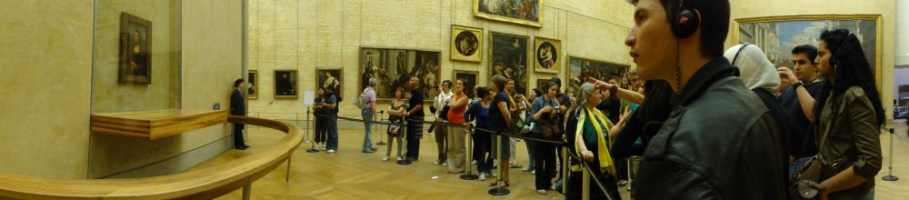 そしてレオナルドの「モナリザ」。 ここは、館内で一番厳重管理。 モナリザを観る人々。(クリックで拡大) 絵画の後は、エジプトを中心に・・・。 前回、観られなかったハンムラビ法典の碑も観たかったのだけど、メソポタミアの場所まで行く付くことができなかった。 そればかりか、歩きつかれて出口を探そうにも、歩いても歩いても出口が見つからず、へとへとになっちゃった。 |