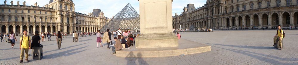 ルーブル宮でパノラマ撮影(クリックで拡大) 水曜と金曜は、22時まで開館している。夜は、結構空いていてゆっくり観られた。 まずはなんと言ってもサモトラケのニケの像へ。ルーブル美術館のドゥノン翼から入場し、まずはこの像と再会だ。この階段上へのアプローチがたまらない。 石の彫刻なのに風にたなびく姿が美しすぎるぜ。 そして、ミロのヴィーナスとも再会。あたかも最初から腕が無かったかのような完璧な美のシルエットにノックダウンだぜ。 ダヴィッドの「ナポレオンの戴冠式」。ダヴィッドの同じ絵がヴェルサイユ宮殿にもあるけど、こっちが本物だよね? ドラクロワの「民衆を導く自由の女神」にもまた会えた。 にっし君、スケッチ中。 ラファエロの「聖母子」とも再会。