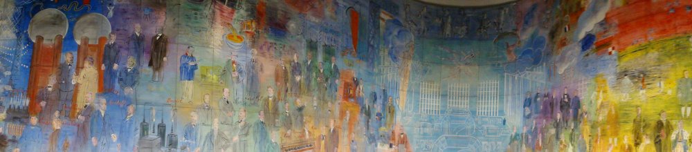 昔は、家具とか興味なかったけど、最近は、家具のデザインが面白くなってきた。将来、自分の部屋に置く家具とかチェックしながらね。(笑) そしてここには、レオナール藤田の絵が一枚あるんだよ。前回来た時に、ここにあるんだってびっくりしてね。 林家木久扇師匠もいたよ。 これは、デュフィの「電気の妖精」という絵。伝わらないと思うけど、高さ10メートル、幅60メートルの巨大な壁画なの。この絵のためだけの巨大な空間の部屋があって、まさに絵の中に入る感じ。(クリックで拡大) |