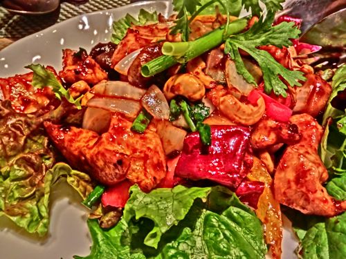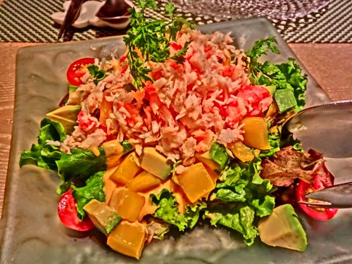 席に置いてあるクッションも素敵。おしぼりもハーブの香りがして気持ちがいい。 ガラスのお皿と敷物が夏らしく涼しげだ。 静かでいい雰囲気だった。 蟹とアボカドのサラダ。タイ料理店だけど、辛くない料理もたくさんあった。ソースも美味しい。 海老のすり身挙げ。甘いソースをかけて食べる。これがすごく美味しい。 大山鶏のカシューナッツ炒め。これはピリ辛だったけど、美味しかったねえ。ここは、何を食べてもグレードが高いなあ。 これは何だ? 玉子の包みを破ると中からタイ風焼きそば。ライムを絞りナッツをまぶして、これも旨い。 デザートのマンゴー・レアチーズ・ケーキ。もうどれも美味しかったなあ。雰囲気もいいし、また来たいな。 JIM THOMPSON'S Table Thailand 東京都中央区銀座2-2-14 マロニエゲート10F 03-5524-1610 |