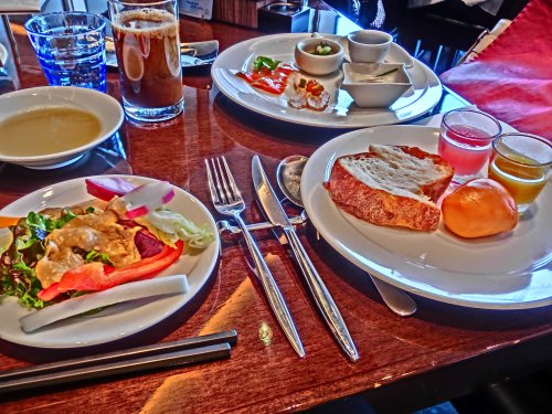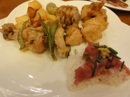 せっかくだから、雅叙園で食事と思ったんだけど、百段階段を出たらもうやっているレストランがビュッフェ・レストランだけだった。それもラストオーダーまで30分だったので、慌しく食べた。でもやっぱりビュッフェだと食べすぎちゃうねえ。