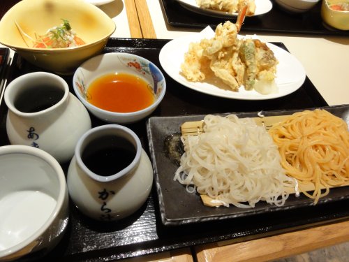 蕎麦の前におでん。 そして玉子焼き。やっぱり蕎麦屋に来たら玉子焼きだよなあ。 期間限定のセットを頼んでみた。 玉子とじ雑炊。茸もいっぱい。 天ぷらは、蟹と茸。茸づくしという感じ。ただ、天ぷらは揚げすぎ、固かった。 更科と季節の蕎麦。季節の蕎麦は、薄っすら朱色。一味唐辛子の蕎麦だった。ちょっぴり辛い。 ここの特徴は、辛口の汁と甘口の汁をお好みで食べるところ。ブレンドしてもいい。 永坂更科布屋太兵衛 新宿タカシマヤ 東京都渋谷区千駄ヶ谷5-24-2 タカシマヤ タイムズスクエア14F TEL:03-5361-1873 |