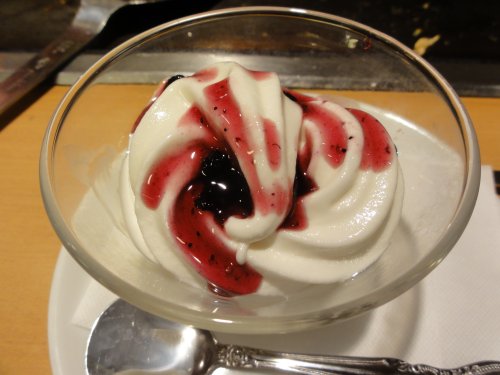 豚肉を玉子で巻いて焼いた「とんぺい焼き」とジャガ・アスパラ。とんぺい焼きも美味しい、ここで食べたことない。アスパラガスが大好きなので、このメニューも嬉しい。 塩マネヨーズ焼きそば お好み焼きは、いろんな種類があるが、とりあえずいろいろ入った風月焼き に。期間限定サービスということで、料金そのままに牡蠣を入れてくれた。ソースが美味しいのかなあ?小麦粉が少ないのかなあ?ここのお好み焼きは、他と比べて粉粉してないので、美味しいんだよ。 お好み焼きにそばが入ったモダン焼き。こちらもサービスで牡蠣を入れてくれた。 デザートのフローズン・ヨーグルト。酸っぱい。 鶴橋風月 ヨドバシAKIBA店 東京都千代田区神田花岡町1-1 ヨドバシAKIBAビル 8F TEL:03-3526-3614 |