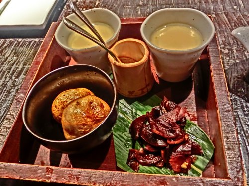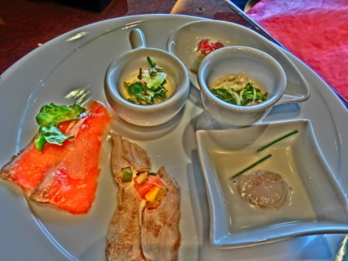 お昼は、野菜を中心にしたプリフィックス・メニュー(2,500円)のみ。数百円プラスするとメインの料理とデザートがそれぞれグレードアップできる。健康志向なのか全席禁煙は、嬉しい。 前菜は、ブッフェで食べ放題。 バーニャ・カウダ。最近、よく耳にする料理名だな。Wikipdiaによるとイタリア・ピエモンテ州を代表する冬の野菜料理であり、ピエモンテ語で「バーニャ」は「ソース」、「カウダ」は「熱い」を意味するんだと。 パンは、焼きたてのが頻繁に運ばれてくるが、それほどグレードが高くない。でも、右のコロンとしたパンは、トマトパンで、中は真っ赤で面白い味だった。 ピンクの色水は、大根とリンゴにジュース、黄色いのはマンゴと生姜のジュース。どちらも野菜が入っていない方が美味しいと思う。 食べ放題の前菜は、野菜と魚介類が中心で、これはとっても良いと思った。 メインは、500円プラスして、「特選牛カイノミのステーキ さっぱりとしたレフォールソースで」にした。全体的に量は上品だが、美味しい。 デザートも300円プラスして、「福岡県産あまおうとサクサクパイのミルフィーユ」に。丸ごとあまおうのホワイトチョコレート・コーティングから、あまおうのソルベ、ミルフィーユとあまおうづくし。これは大満足。 店内は、こんな感じ。 クルーズ・クルーズ新宿 東京都新宿区新宿3-5-4 レインボービレッジ8・9F TEL:03-5485-3900 |