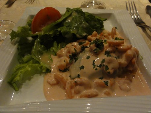 ディナーは、何日か前に前を通りかかって目を付けていたシーフードのレストランへ。1896年と店の看板にあるけど、創業100年以上ってことなのかな? とにかく内装のゴージャスな雰囲気にノックダウン。こういう店、好きなんだよなあ。 サラダは、フレンチマスタードでちょっぴり辛め。 そして、これがお楽しみの海鮮盛りだくさん。どれも美味しかったねえ。 こぶちゃんが流暢なフランス語で注文してくれから助かったよ。 隣のテーブルのフランス人夫婦が、こぶちゃんのフランス語に感心して話しかけてきた。昨年、日本を旅行してとても素晴らしかったんだって・・・。 この海老の料理も美味しかったなあ。 牡蠣がねえ、大好きなんだ。 デザートは、クレーム・ブリュレに。パリパリの表面がたまらない。 |