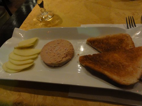店に入ったら、食事をしていた品のいいマダムに「すてきな着物ね」と褒められた。フランス語だったから分かんなかったけど、こぶちゃんがそう訳してくれた。 にっし君もこぶちゃんも飲まないから、また一人で白ワイン。 あんまり飲むと部屋でにっし君に「酔っ払いめっ」って詰られそうだから1杯だけね。 前菜のアボガドと小海老のクリームソース和え。 こちらは、にっし君が頼んだフォアグラのパテ。 サーモングリル。 こちらはにっし君のリブステーキ。 こぶちゃんが頼んだ鴨のグリル。ちょっともらったけど、見た目以上にものすごく美味。 フランスで食べる鴨は、やはり美味い。 デザートのフルーツケーキ。でもお腹一杯で半分以上残しちゃった。 とっても美味しかったのよ。 こぶちゃんが頼んだクレームブリュレ。焦げ目が最高に美味い。 |
