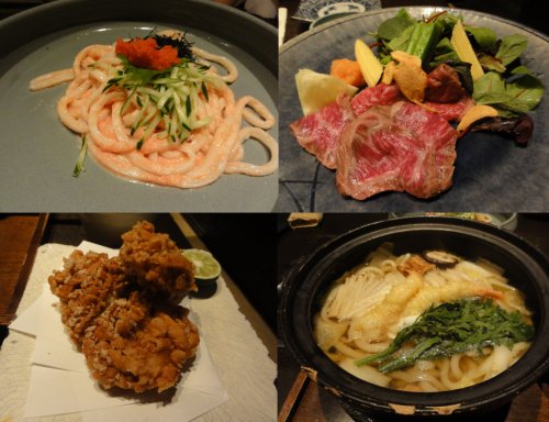 映画の後、夜食。国際色豊かな飲み屋の客引き(笑)を間をすり抜け、にっし君が行きたいと言っていたうどん屋「つるとんたん」へ。入店待ちの人がたくさんいたけど、思ったより早く入れた。また、静かで落ち着いてとても良い雰囲気のお店だ。量の感覚が分からず、またしても注文しすぎちゃったけど、美味しかった。 温かい鍋焼きうどんも良かったけど、やはりうどんのコシは冷たい方が出るね。明太子を和えた冷たいうどんが絶品だった。牛刺しも、鱧の唐揚げも美味だったねえ。 |