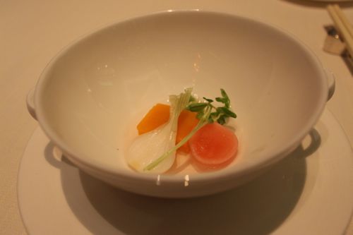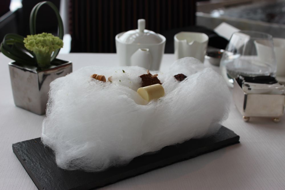 リッツ・カールトン香港にあるイタリアン・レストランのToscaへ。102階にあるミシュラン1つ星のお店。若干霞がかかっているけど、さすがの眺め。ランチコースを注文。勧められるままにワインも。これがなかなか美味しい。 テーブルにあった真ん中に窪みがある皿にオリーブ・オイルが注がれ目玉焼きみたいになった。 パンは、5〜6種類から選べた。ベーコンビッツが入ったキノコのようなパンとイカスミパンをいただく。オリーブ・オイルで食べるパン、イタリア〜ンだねえ。 前菜のツナ 盛りつけ方も綺麗 ガラス張りの店内。飾られているオブジェが美術館の作品のよう。 パスタがギリシア神殿の円柱みたい。上に海老が載っている。 メインのお肉。肉もソースも抜群に美味しい。そして目でも楽しめる盛りつけ方も素敵。 イタリアンに来ると、やっぱりドルチェには、ティラミスを頼んじゃうよねえ。 コーヒーと一緒にチョコレート。綿菓子で出来た雲に載ってきた。なんでもこのビル、時期によってはほとんど雲の中で何も見えないそうで、それを逆手にお店のデザートとして考えたみたい。周りで子供が喜んで雲をちぎって食べていた。 ミシュラン星付き、リッツ・カールトン内にある割には、リーズナブルなお値段。マネージャーらしき店員が最後にやってきて、「美味しかった?」って聞くので確かに美味しかったと答えると、「また来たい」っていうからまた来たいって答えた。そうしか答えられないよねえ?そしたら、「じゃ、今夜何時、明日だったら何時。今すぐ予約する?」って畳み掛けてきたけど、ジョークっぽくない雰囲気だったので、結構営業大変なのかなあ?確かに、市内の中心地からちょっと遠いし、ここまで上がって来るのも面倒だしねえ。まあ、あとでメニュー見て考えて予約するよって言って店を出る。 静かだし、料理もワインも美味しいし、おすすめ。 TOSCAThe Ritz-Carlton, Hong Kong |