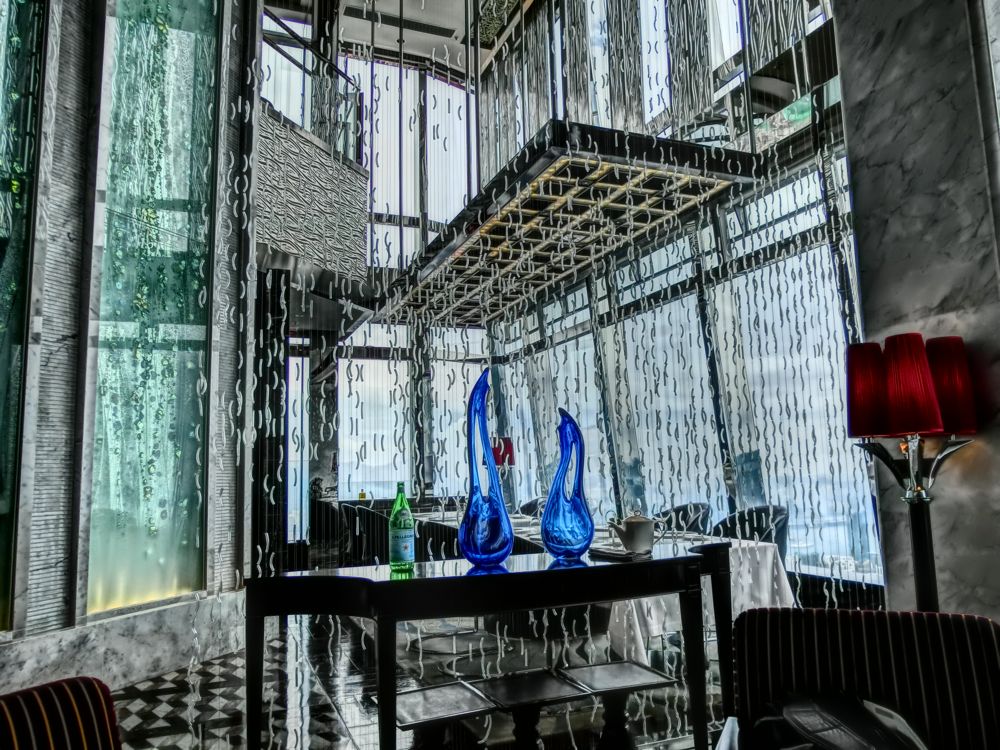リッツ・カールトン香港118階、世界で最も高い所にあるバーOZONEに行ったら、ものすごい人であきらめる。ここは有名みたいで、ホテルの宿泊客以外にもお客さんがたくさん来ている感じだった。半分オープンエアーで、小雨も降っていたので移動する。