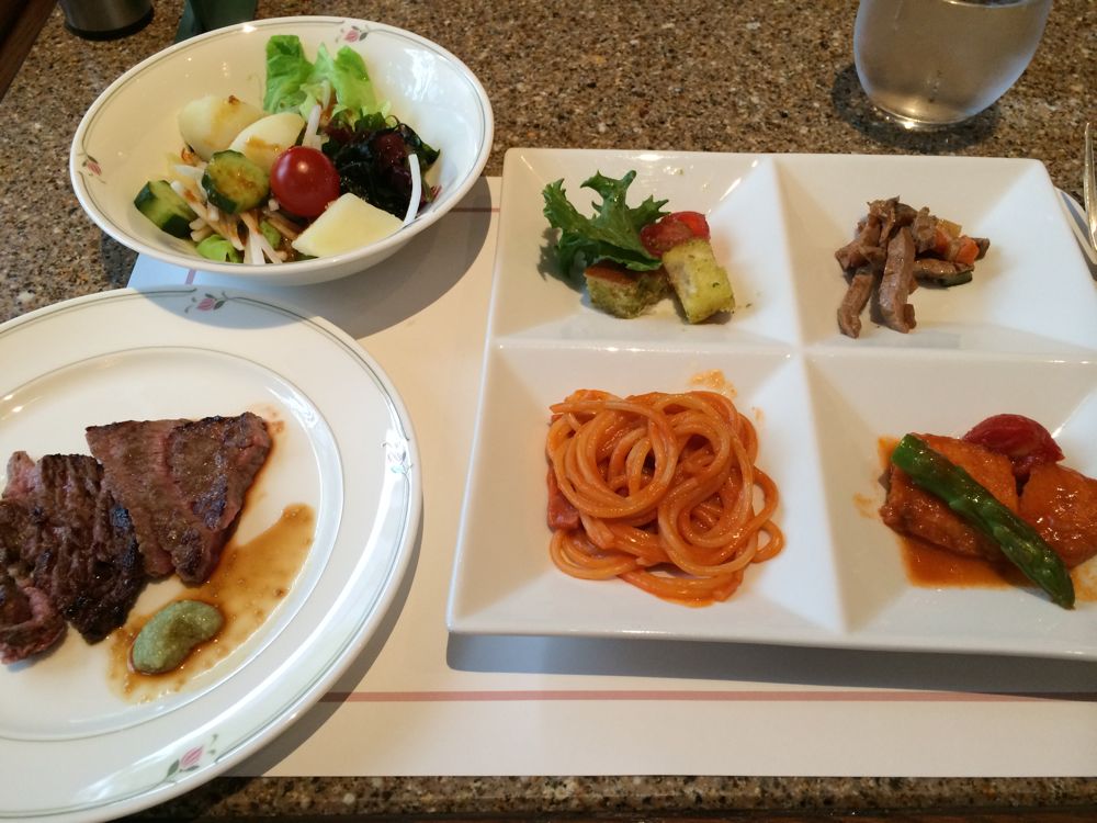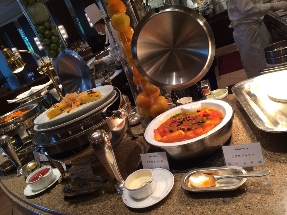 ビュッフェ・ランチを食べにロビー階にあるシンフォニーへ。 ビュッフェは、悪かろうなイメージがあるが、ここはクオリティーが高く美味しい。 野菜をしゃぶしゃぶして食べる。 玉子料理は、その場で作ってくれる。 ステーキも焼きたてをサーブしてくれるので美味しい。ちょっとづついろんな種類が食べられるので嬉しいね。 ホテルとは言え、ビュッフェのケーキは美味しくないことが多いが、ここはケーキもすごく美味しい。なのでたくさん取り過ぎちゃう。ビュッフェのケーキにここまでクオリティー高いものを出すのはすごいなあ。 このホテルのケーキやプリンは美味しいので、たまに会社帰りに買って帰るよ。 コーヒーショップ シンフォニー ロイヤルパークホテル 東京都中央区日本橋蛎殻町2丁目1番1号 |