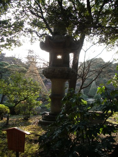 庭園は、純和風。とても巨大な灯篭があった。