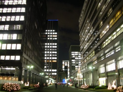 新日鉄と日本ビルの間。ここを真っ直ぐ行くと東京駅。