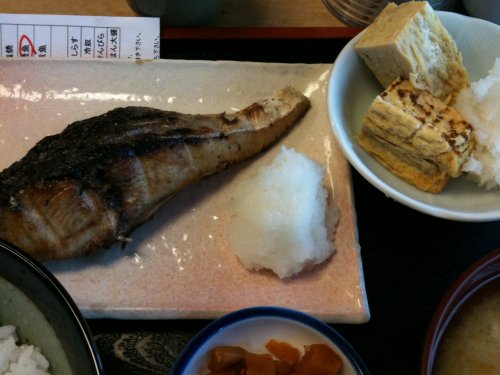 焼き魚定食850円。それに100円で玉子焼きを追加。