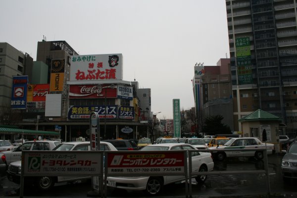 青森駅前。タクシーがすごく多い。弘前と比べると流石、県庁所在地、賑わいを感じた。