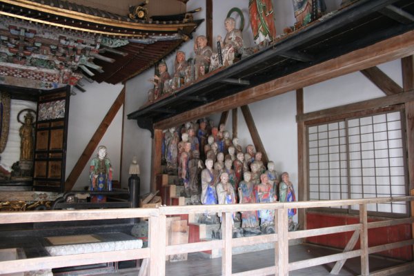 長勝寺から伸びる一本の杉木立。両脇に寺が並び、この一体は、禅林三十三ヵ寺と呼ばれている。このように形成されたのは、江戸時代。なかなか壮観で圧倒的、かつ静かな地域になっている。 ただ、寺のほとんどは、最近改築されたのか、どれも昭和、平成の建築でちょっとがっかり。 さらにがっかりは、続き、長勝寺の本堂は、修復中で平成20年まで見ることができない。 この寺は、津軽藩津軽家の菩提寺。寺町の位置関係からも、それが伺える。 本堂は、見られないけど、それでもなかなかの建物があり、皆国の重要文化財になっている。 極彩色の仏像もたくさん安置されている。 禅林三十三ヵ寺には、写真のようなさざえ堂もある。会津若松に比べるとかなり小規模だが。 |