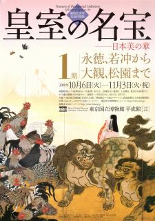 若冲は、京都、相国寺 承天閣美術館で釈迦三尊像と動植綵絵全作展示の時観たのだけど、やっぱり改めて観て、その美しさにはため息ものだった。旧友と再会するような懐かしさ、あ の時と変わらぬ姿というのが良かったねえ。一応、ひとつひとつ観ましたが、ここが大混雑になるのは必至なので、人々がここにとどまっている間に第二会場 へ。 第二会場は、もう空間が芸術作品。過去に三の丸尚蔵館で観たことあるのも結構あったね。今回は、七宝焼きや硝子の巨大な壷の美しさに見惚れてしまった。螺鈿の蒔絵には、もう溜息のみ。美しすぎる。 川島甚兵衛の壁掛けには、思わず声がでちゃったよ。 1期は、11月3日まで。 総展示替えの2期は、11月12日からで、正倉院の宝物もやってくる。 皇室の名宝 http:// |