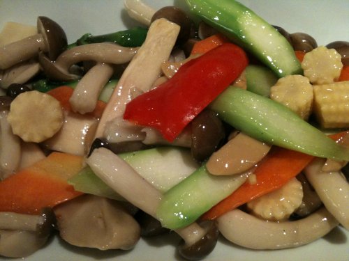 野菜と茸の炒めもの。アスパラが良いアクセント。