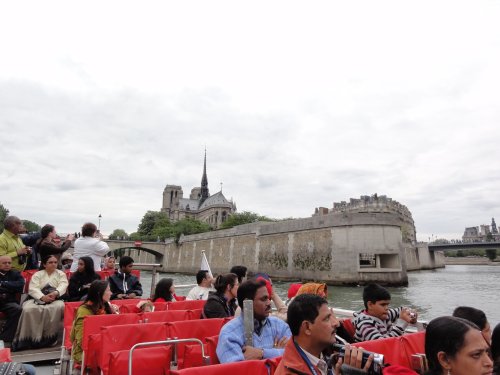エッフェル塔の辺りから船に乗ってセーヌ川クルーズ。晴れていれば、また印象が違ったのかもしれないけど、正直退屈だったなあ。約1時間のクルーズだが、最初の10分くらいで飽きてしまい、ふと横を見ると、にっし君とこぶちゃんは寝ていた。