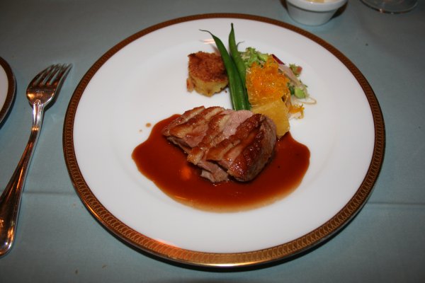 メインのドンブ産 鴨肉のロースト オレンジソース。