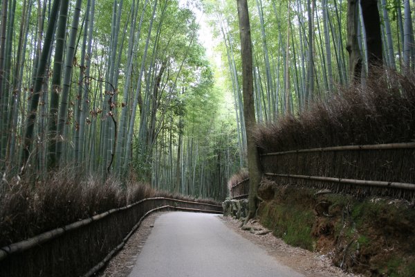 野宮神社から嵐山のトロッコ電車駅へと抜ける竹林の道。嵯峨野の代表的な散歩コースです