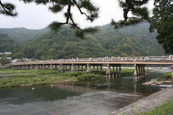 実際は、コンクリートで自動車も走りまくる近代的な橋ですが、やっぱりこれは絵になりますなあ。嵐山のシンボルですね。秋の紅葉の時期は、蜘蛛の子散らし、芋を洗うような人ごみに辟易します。この後を振り返るとどこにでもあるような観光土産店がひしめいており、あまり風情はありません。
