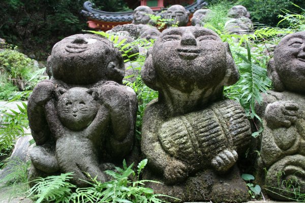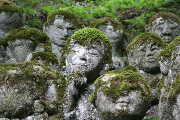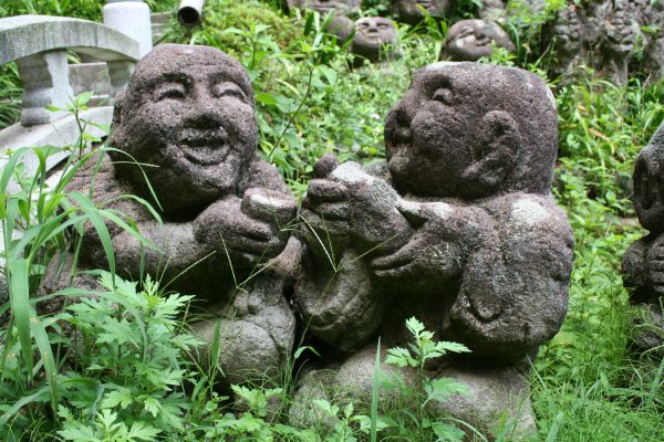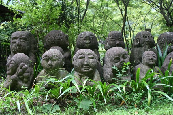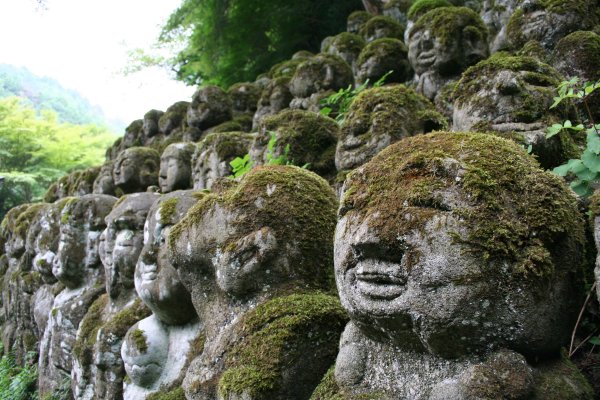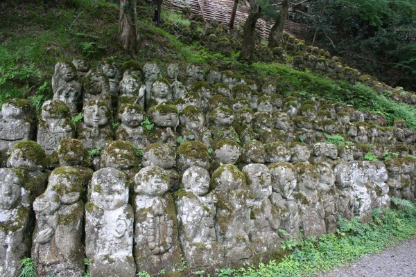 嵯峨野の外れにひっそりと佇む愛宕念仏寺は、訪れる人もそう多くは、ありません。嵐山から歩くとかなり離れていますし、バスも1時間に1本くらいなので、穴場なのかもしれません。 「愛宕」と書いて「おたぎ」と読みます。 開山は、764年まで遡れる由緒正しきお寺でもあります。 圧巻は、狭い境内にひしめく愛らしい羅漢様です。石像千二百羅漢と呼ばれています。一つ一つがとてもユーモラスです。自分の顔と似ている羅漢さんを探すのが、楽しいですね。 一つ一つポーズが違います。 境内の山の背に羅漢様がびっしりです。 見て周るのが楽しいです。 あなたが来るのを何百年も待ってましたよ。 最も多いのは、お寺だけに手を合わせてお祈りしているポーズですね。 上の方は、近くまで寄れません・・・。 考え中? 猿? 猫でーす。 まあ、一杯どうぞ。 もう、一生離れないから・・・。 そんな、近くで言わなくても聞こえますよー。 もう、仕事なんて忘れちゃえ! お安くしとくわよーん。 前衛的な顔でしょう? どうしようかなあ。 僕は、どこに隠れているでしょう? |
