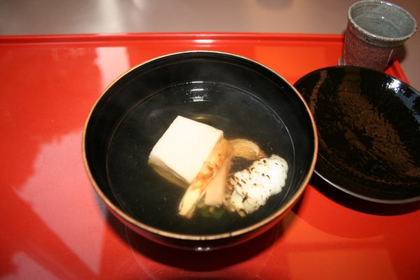 吸物は、焼霜鱧、胡麻豆腐、松茸に柚子です。