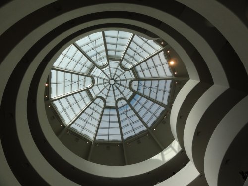 それでもここは、建物自体が芸術品。最上階から続くらせん状のスロープを利用した展示スペースが秀逸だ。