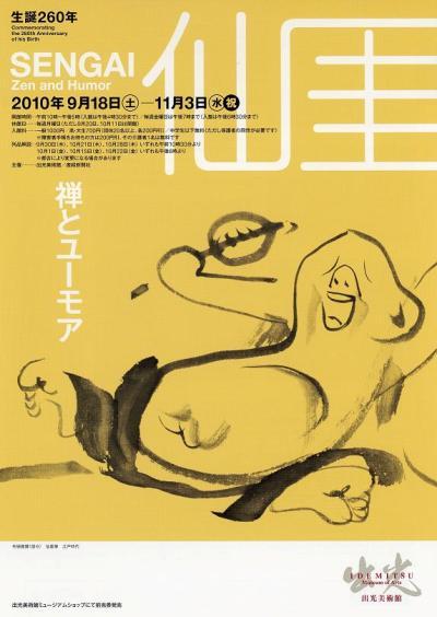 なんとも言えないユーモラスな表情の画と個性的な書は、何度も見ても飽きないし、ずっと見つめていたくなる。 以前、観た書画もたくさん展示されていたが、子供と月を観ている絵は、何度も観ても微笑ましくなり、またその類い稀なセンスに唸らされる。月を取ってくれとせがむ両手を挙げた子供の姿は、父親と一緒にいる嬉しさにまるで踊っているような躍動感がある。 今回は、布袋12題として、布袋様の絵ばかり集めたコーナーもあった。でっぷりしたお腹、なんとも平和なご尊顔は、仙厓らしいチョイスだなあと感服。 なんとなくだらんとして、ゆったりした和やかな人間の一面を捉えたところに、彼の優しさが伺える。 落語好きには、たまらない「堪忍」の作品も今回も展示されていた。 また、仙厓が愛用していた品々も今回も展示されていた。織部焼きの湯飲みとか持っているあたり、やはり粋な人だったんだろなあ。 3年前の展覧会の感想は、こちら。「仙厓・センガイ・SENGAI ―禅画にあそぶ―」 仙厓 -禅とユーモア- 出光美術館 ~11月3日まで |