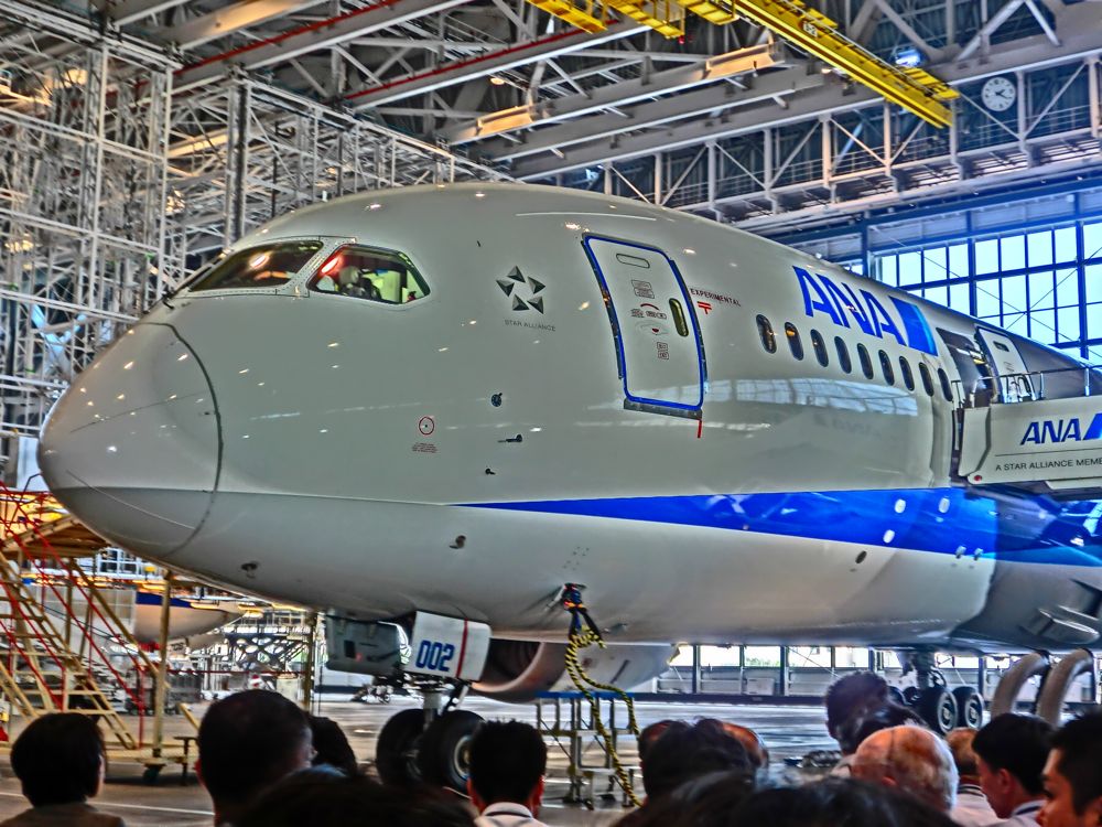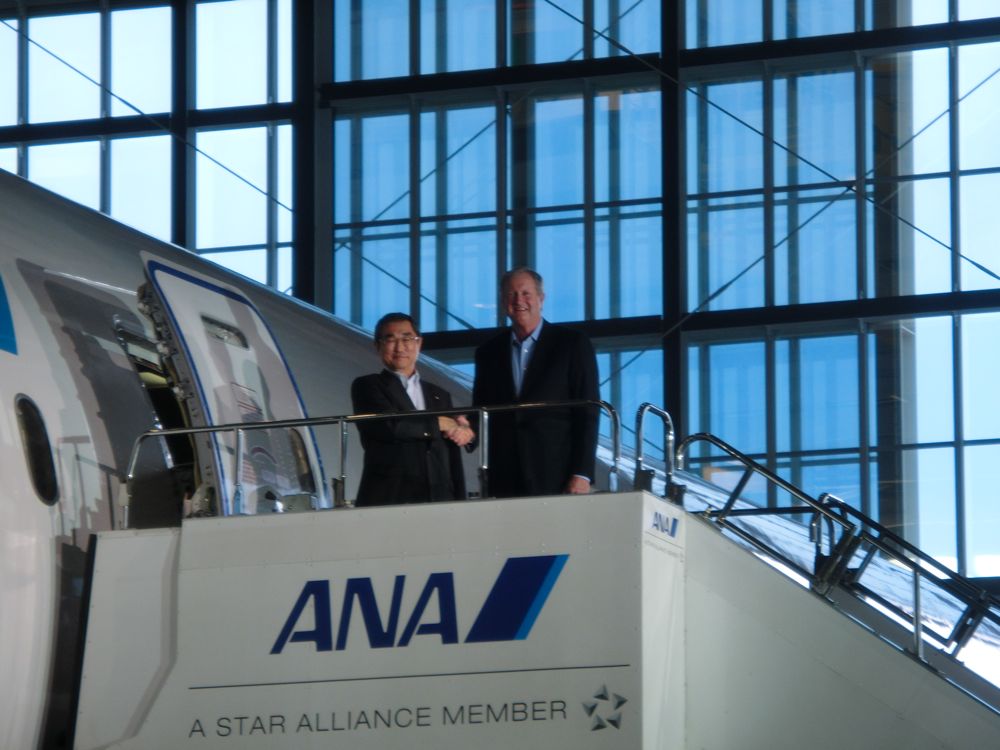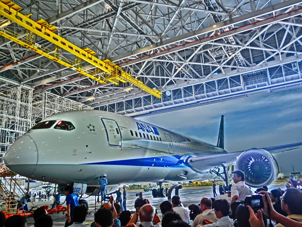 忠臣蔵の塩冶判官じゃなけど、思わず「待ちかねたぁ〜」と叫んでしまう。待ったよー、待った。だって、最初は、北京オリンピックの時に飛ぶはずだったのにねえ。 ボーイング787の日本初飛来メディア・イベントに行ってきた。ANAがローンチカストマー(初号機の発注者)ということで、日本らしいこだわりが随所にあるんだよ。何が日本的かって、そりゃトイレにウォシュレットが装備されていることさ。 この日は、プレス向けお披露目イベントだったんだけど、アジャイルメディア・ネットワークさんがブロガー用に30席確保してくれて、申し込んだら当選しちゃったのだ。 以前、ANAの整備上を見学した時、隣で787用のハンガーを建設中で、今回そちらがプレスお披露目会場となっていた。ハンガーの扉が開くと音楽ともに787が入ってきた。わくわくするねえ。やっぱり男は、いくつになっても少年なんだなあ。飛行機は、かっこいいし、ロマンがある。 そして、飛行機の中から登場したのは、全日空社長の伊藤信一郎氏とボーインCEOのジム・オルボー氏だ。ボーイングのCEOが来日しちゃうんだからねえ。すごいねえ。やっぱり新型機種のローンチ・カストマーになるべきだねえ。新型機種が最初にアジアに来るというのも珍しいんだって。 いやあ、新しい飛行機ってかっこいいよなあ、奇麗だよねえ。中に入りたかったけど、これはテスト機だから内装とかされてないんだろうね。 早く乗りたい。お客を乗せての初飛行は、羽田ー岡山または羽田ー広島になる予定だそう。まあ、いずれは国際線に導入されるんだろうね。 本当に待ち遠しい! ANAは、787を50機発注してるけど、いつまでの全部届くのですかね?しかし、やっぱりジャンボも好きなんだよなあ。747がなくなって行くのは本当に寂しい。B747-800は買わないのかなあ? お土産もたくさんいただいちゃった。 真面目版ブログの記事も見てね。 |