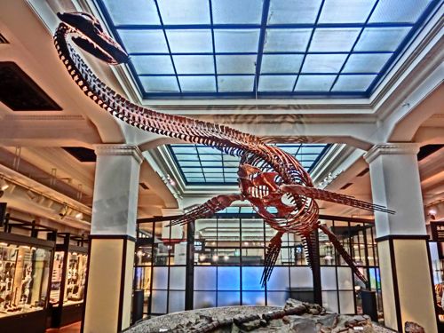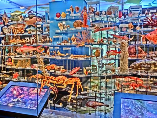 昔は、本館と言ってと思うんだけど、今は、特に日本の科学の展示館になっている。以前は、この正面玄関から入場し、いきなりアロサウルスの骨格がデーンと迎えてくれたが、現在は、地下が入り口になっている。建物自体は、重要文化財になっているが、外観も内装もその意匠の美しさには圧倒される。 かつてのエントランス。今は、閉ざされている。ここから入館できたら、博物館の体験はより素晴らしいものになると思うのだが。 天井のドーム、吊り下げられている照明もこれまた美しい。 ステンドグラスもたまらない。 吹き抜けのホール。この下中央に、昔は、アロサウルスの骨格が展示されていた。 階段部の意匠もため息が出る美しさだ。 目玉展示の一つ、フタバスズキリュウの化石。 地球館に負けじと色鮮やかな展示品。 椿の花。いろんな形があるのね。 手前の白い秋田犬は、渋谷駅前で銅像になっている忠犬ハチ公の剥製。その後の右上は、映画『南極物語』でも有名なタロー、ジローのジロの剥製。複製なのかなあ?以前見た時は、もっと貧弱な印象だったけど。 鶏もすごい種類。 弥生人の女性。 屋外展示の鯨。 |