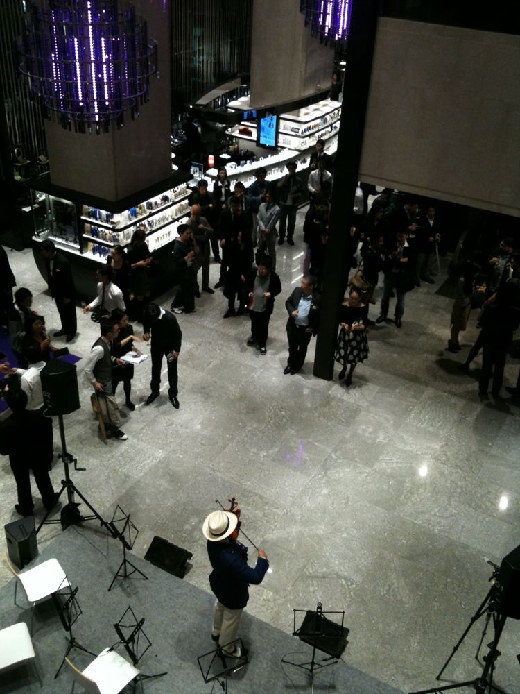明日オープンする阪急MEN'S TOKYOのオープニングレセプションに行ってきた。銀座にはここにある高級ブランドの大型路面店がたくさんあるが、一つの場所で比較できるのは、やっぱり便利だなあ。 さっと観てすぐに帰ろうと思ったけど、結局2時間近くいたなあ。 1階のロビーでは、弦楽四重奏やバイオリンの演奏が。その中でシャンパンやフィンガーフードが振る舞われた。各フロアでは違ったお酒が振る舞われていた。地下では、ソフトドリンクも。お酒を飲みながら売り場を徘徊するのは、なかなかないな。 今日は、どの店員も売りつけるという風でなく、いろんな製品をどんどん見てぇな雰囲気で、もうたくさんいろんなお店のいろんなものを出してもらっちゃった。近々財布を買おうと思っているので、今日は、いろんな候補を見てきた。最近は、エイの皮を使ったものが結構出て来ているね。スターと呼ばれるエイに一つしかない模様が面白かった。エイ皮製品、和服にも合いそうでかなり惹かれた。 帰りにお土産をもらったよ。PRキャラクターの市川海老蔵の海老を寿の文字にあしらった手ぬぐいと何故か木村屋のあんぱん。(笑) 阪急MEN'S TOKYO http://www.hankyu-dept.co.jp/mens-tokyo/ |