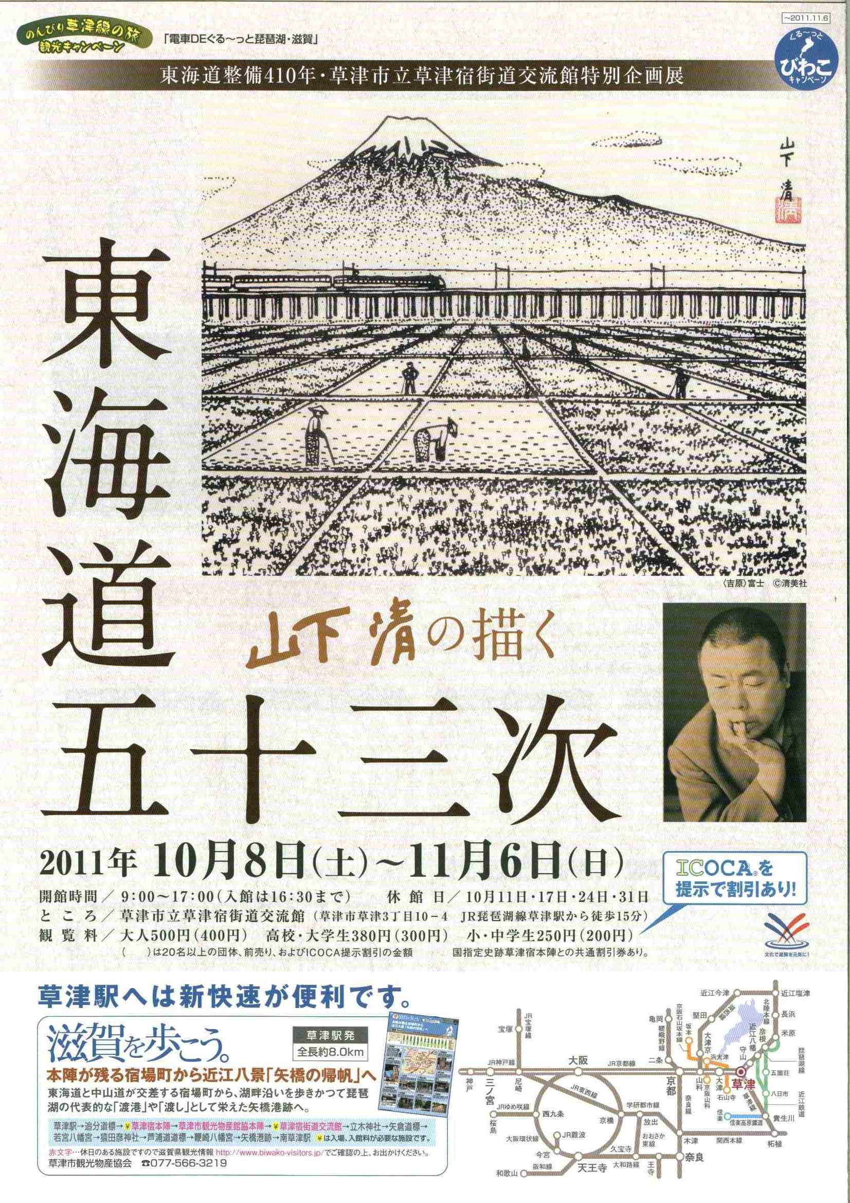 この展示会は、タイトル通り東海道五十三次を描いている。江戸時代と違い、車やトラックも走る風景だが、それでも懐かしいような、見たことも無いような日本の姿が描かれていた。 点描画のようなタッチは、素朴なモノクロの世界を不思議と印象深くする。「目の前の景色より、絵が素敵になるはずはない」とは山下の言葉だが、絵には絵で非常に魅力的な力がある。 どの絵もずっと観ていたかったなあ。山下清がこんなにすばらしい画家だったなんて、今まで気付かなかった。 特別展以外にもいくつか山下の絵が展示されていて、ヨーロッパ旅行の際に描かれたものは一転色鮮やかなタッチで目に焼き付くようなオレンジや赤が印象的だった。こちらも驚くほどビビットで力強く、圧倒された。油彩だと思っていたら水彩画らしく、またびっくり。 興味深かったのは、山下の直筆の日記帳が展示されていたこと。テレビドラマのようなあの口調で書かれていたのと、鋭い眼差しからの世の中の描写がこれまたびっくりだった。日記は、句読点が一切なく、まるで樋口一葉や古典の文章みたいだった。山下曰く「話をしている時にカギかっことか丸とか言わん無いんだな」と説明書きがしてあった。 俄然、山下清の絵に興味が出て来た。もっと早く気付いていれば良かったなあ。 草津市・草津宿街道交流館にて。 |