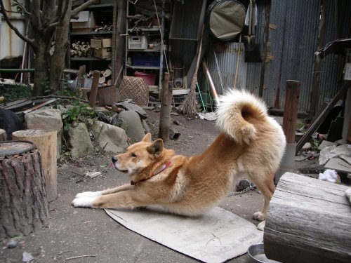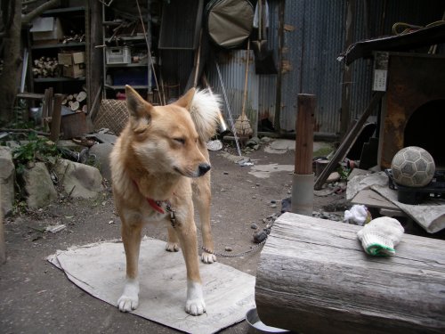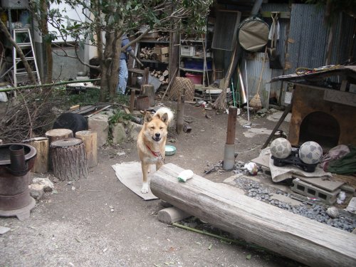 浄瑠璃寺で飼われている犬、名前は、「じんべい」。静かな寺にいることをちゃんと知っているのか、全然吠えません。人懐っこくって、とても可愛いです。