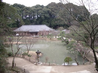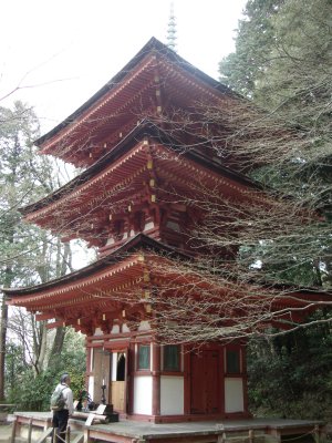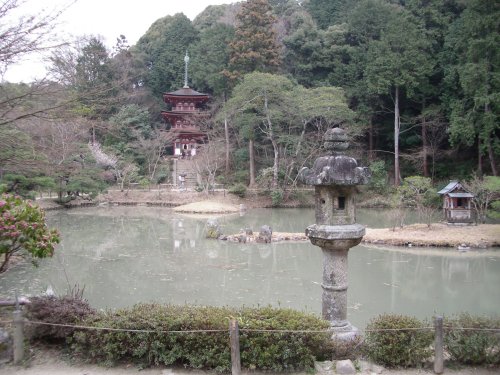 国宝の三重塔。平安時代の創建当時、そのままの姿です。小高い丘の上にたち、池の上に映すその姿は、きっと綺麗なんでしょうねえ。今日は、ちょっと曇りがちだったので、ちょっと残念です。