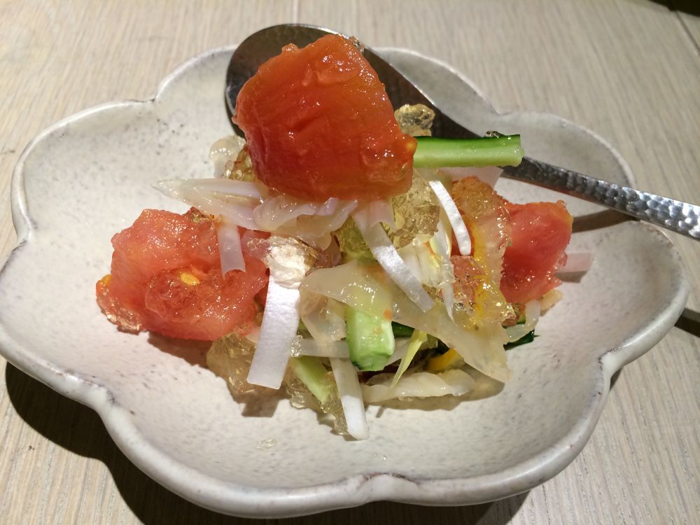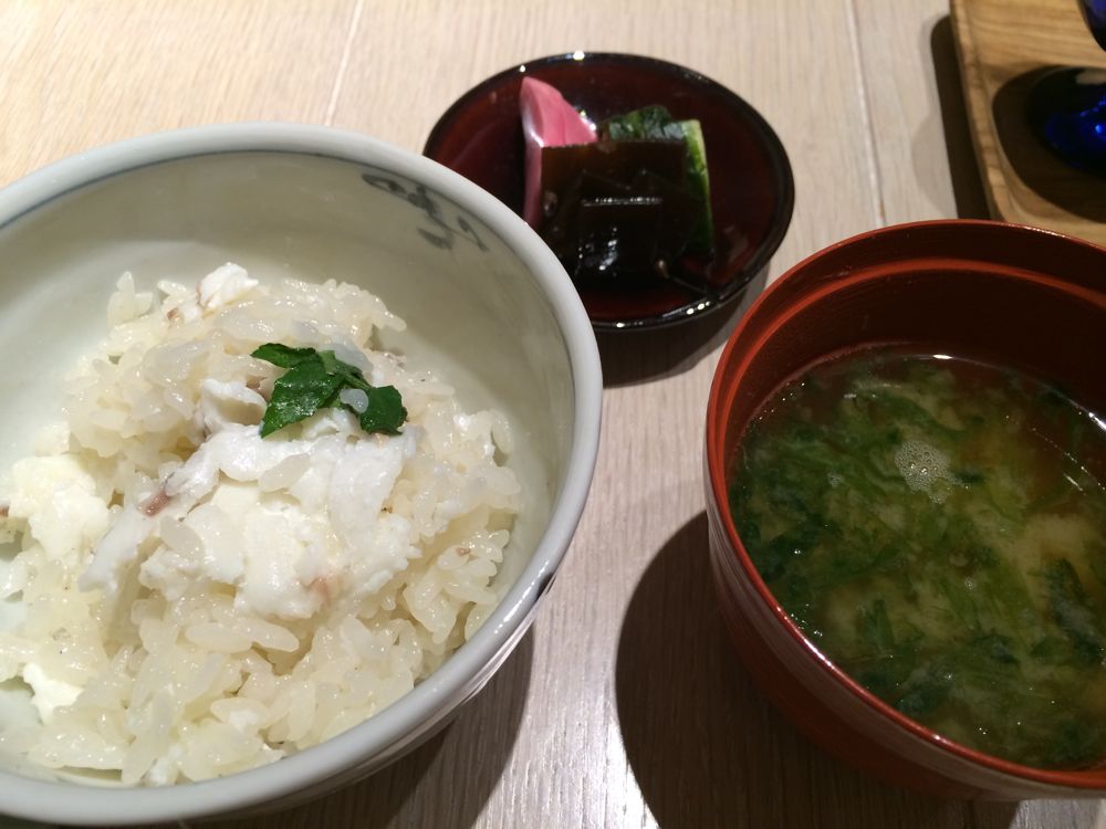 銀座にあるお米屋さん。お米だけじゃなく、日本全国の多種多彩な食材を取り揃えている。惣菜、調味料、果物、お酒、ジュース、お菓子などなど珍しいもの、面白いものがたくさんあって楽しい。2階には、器や文具、工芸品などが展示即売されていて、こちらも全国の逸品を取り扱っている。 1階の奥には厨房があるので、入ってみた。 利き酒ができた。新潟の純米吟醸で、根知男山、真野鶴、田友をいただく。 クラゲとウドをトマトのジュレでいただく。柚子も入っていて美味しかった。これお店で売っていたので、自宅でもこの味を再現できるのかな。 鯛と菜の胡麻和え。美味しい、胡麻ソースがたまらない。 和牛のすき焼き。これは、まあ普通かな。 本日の変わり土鍋ご飯。鯛か筍ということだったので、鯛を選択。さすがお米屋さんだけあって、土鍋ご飯は本当に美味しい。味噌汁に漬け物というこの日本人的幸福もたまらず、大満足。響の土鍋ご飯や料理の方がバラエティーに富んでより魅力的だけど、禁煙で値段も半分以下なので、コストパフォーマンスはこちらの方が高いね。 食べ過ぎず、ヘルシーなので、またここ来たいな。 お米屋さんなので、お米も売ってるよ。量り売り、玄米も買える。 AKOMEYA TOKYO 東京都中央区銀座2−2−6 地図は、こちら。