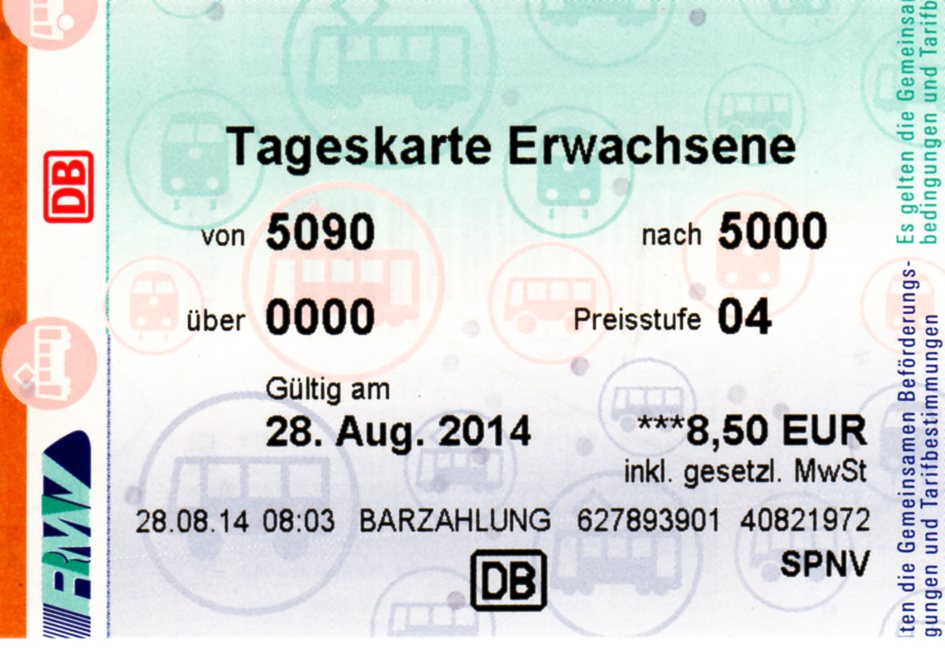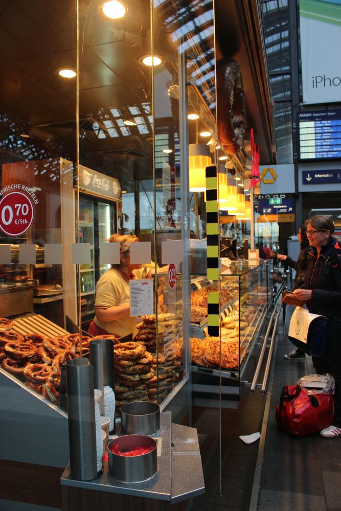 フランクフルト駅の地下には、ドイツ鉄道(DB)の駅がある。ヨーロッパの主要空港の多くは、空港から町中へ鉄道へ行けるから便利だ。以前は、ガイドブックで事前にいろいろ調べてたけど、最近は行けばなんとかなるだろうと全く調べなくなった。 空港の鉄道駅で切符の自販機を見つけ、英語表示に切り替えて、1日切符を買う。3回以上乗るなら1日券の方が安かった。 海外には、駅に改札が無いところが多い。ここも改札がなく、いきなりホーム。切符に使用開始の印字などするのかと、きょろきょろ探して見たけど見つからない。そこへ中央駅行きの列車が入って来た。ホームにいた係員に切符を見せ、これでいいかと聞くと、乗れというジェスチャーなのでそのまま飛び乗る。 結構混んでいる。そうか、今日は平日、おまけに朝の8時台でまさに通勤時間だ。 夏だけどスーツを着ている人が多かった。そう言えば、ちょっと肌寒い。 20分ほどで中央駅に。空港からとても近い。 ヨーロッパの中央駅は、まさにターミナル。行き止まり式のホームだ。個人的にはこういう駅が好き。東京だと上野駅の一部のホームくらいだもんねえ。 ドイツと言えば、プレッツェル。いろんな種類のものが売っていた。また、これがでかいんだよねえ。ずっと固いものかと思っていたけど、意外とソフトで食べやすい。朝食用に買って行くのか、行列だった。 |