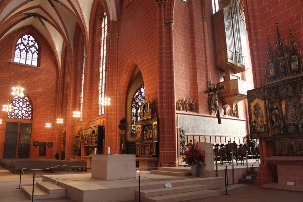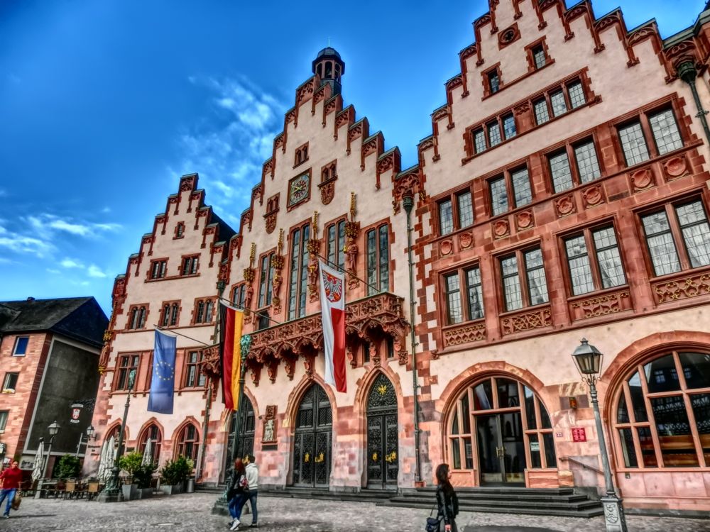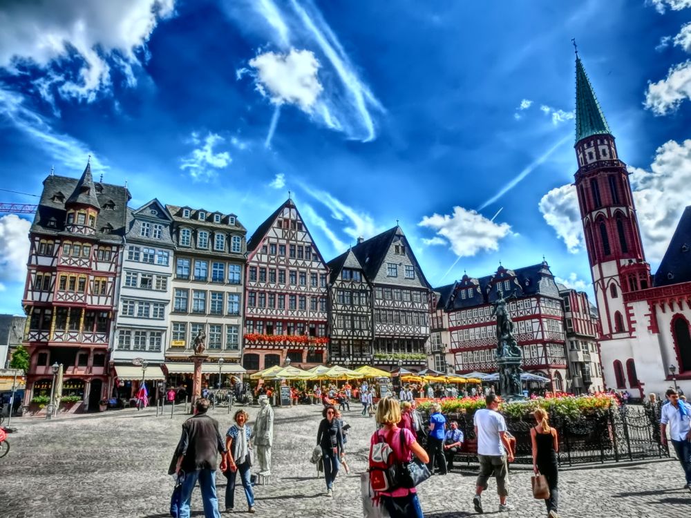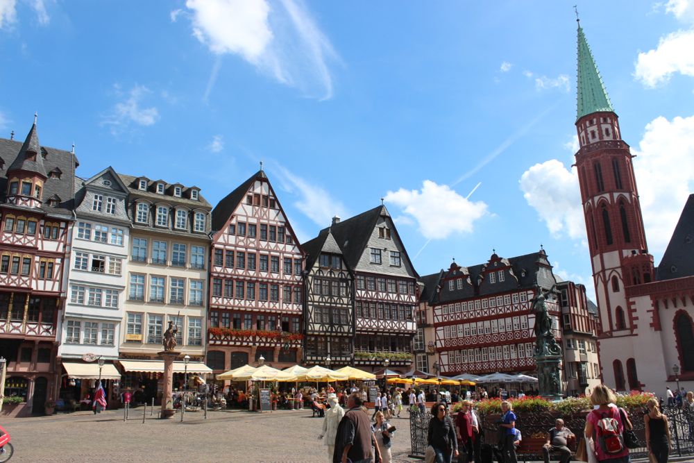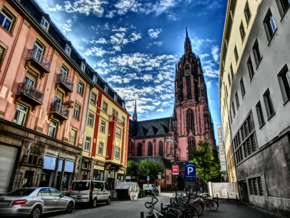 中央駅から地下鉄U線に乗ってレーマー広場へ。駅には、こんなオブジェが。出土品だろうか? 近代的な高層ビルが立ち並ぶフランクフルトの中で中世の町並みが残るレーマーは広場は、街の中心広場でもある。階段状の切妻屋根の建物は旧市役所だ。 しかし、これは戦後復元されたもの。第二次世界大戦の空爆で破壊されたヨーロッパの街は、元通り復元したところの方が多かったが、ここフランクフルトとオランダのロッテルダムは、それまでとは全く異なる景観を選んだ。フランクフルトは、この広場と隣接する大聖堂が戦前の残り香のように小さな記憶として甦った。ヨーロッパ的なものを求める観光客、その観光客目当ての大道芸人でいつも賑やかだ。 写真撮るとお金せびられそうだったから撮らなかったけど、観光地によく居る全身色塗りで像のように動かないでお金入れると動く大道芸人がここにもいたけど、色むらありで肌色がまだらに出てるし、最初から動いている中途半端な輩がいた。 13~15世紀にかけてバロック様式で建立された。神聖ローマ皇帝の選挙と戴冠式が行われた歴史ある教会で、カイザードーム(皇帝の大聖堂)とも呼ばれるとのこと。空爆後の写真でもかろうじて骨格が残っていた。あまりにきれいに復元されすぎている印象だった。 |