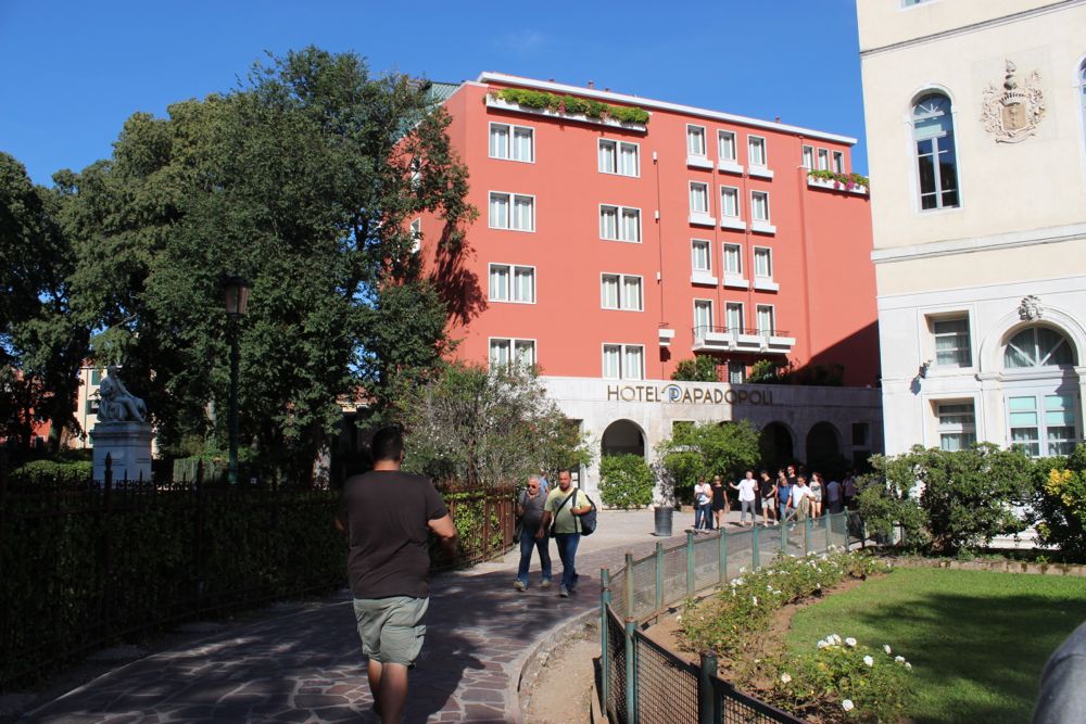 フランクフルトから1時間半ほどでヴェネツィアのマルコ・ポーロ空港に到着。 預けた荷物がカジノのルーレットを模したターンテーブルで回っていた。16番に入ると何かプレゼントがもらえるとか。 ヴェネツィアに来るのは初めてだ。初めての空港だと、ここから街までの行き方が分からない。事前にさらっとガイドブックやネットで調べていたが、まあ着けばなんとかなるだろうと思ってた。 街までは、バス、船、タクシーなどで行けるよう。今回は、クルーズ船に乗るため港近くのホテルを予約してある。街の中心サンマルコ広場へは、水上バスか水上タクシーでしか行けないが、港近くのローマ広場までは車輪のバスやタクシーで行けるみたい。 自販機での切符の買い方がよく分からなかったので、Public Transportaionという看板の窓口で、とりあえずローマ広場までと言ってチケットを買う。6ユーロだった。ぶっきらぼうにバス乗り場を教えられ、空港ターミナルを出てそれらしきバスに乗ろうとする。荷物は自分で勝手にトランクに詰めろみたいな感じ。運転手に切符を見せたら、乗車日時を機械で刻印しろと言われた。そんなの最初に教えてよ、こっちは知らないんだから。 バスに乗って30分くらいでヴェネツィアの入り口ローマ広場へ。途中、線路と並行して走る橋を渡る。この広場までは、車と列車で来ることができる。ここから先は、水上交通か徒歩しかない。 ローマ広場でバスを降り、スーツケースを転がしながら小さな運河に架かる橋を渡る。橋は階段だけど、スロープの板が置かれていたので楽だった。橋を渡ってホテルはすぐそこ。こんなに近かったのか、ホテル選び正解! |