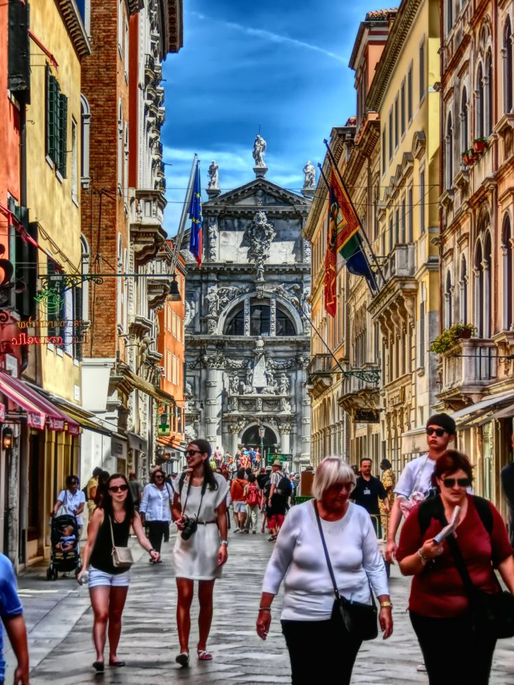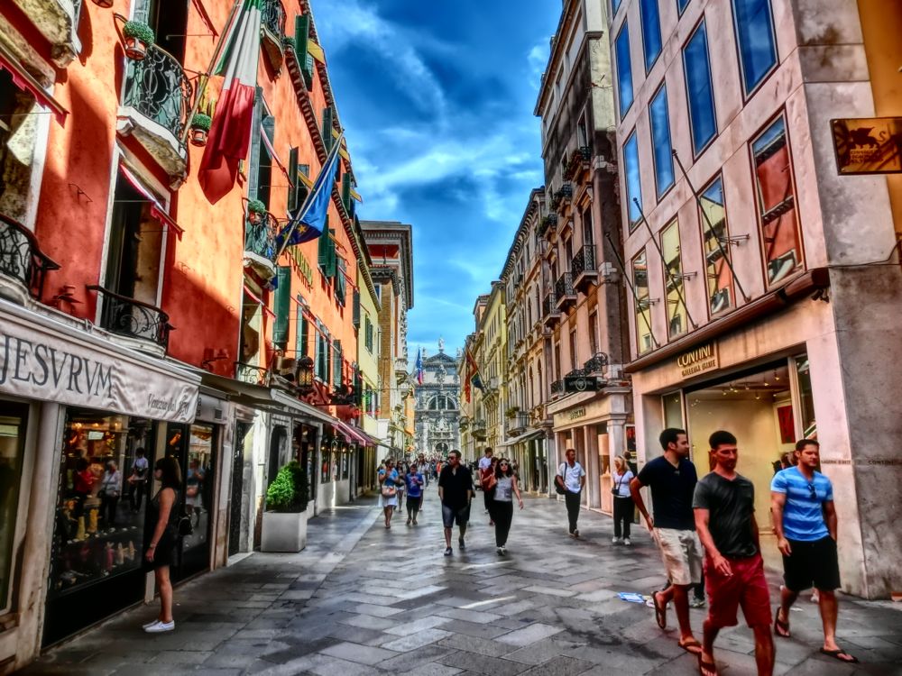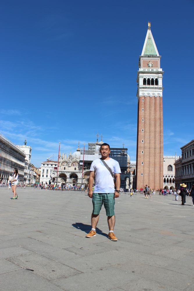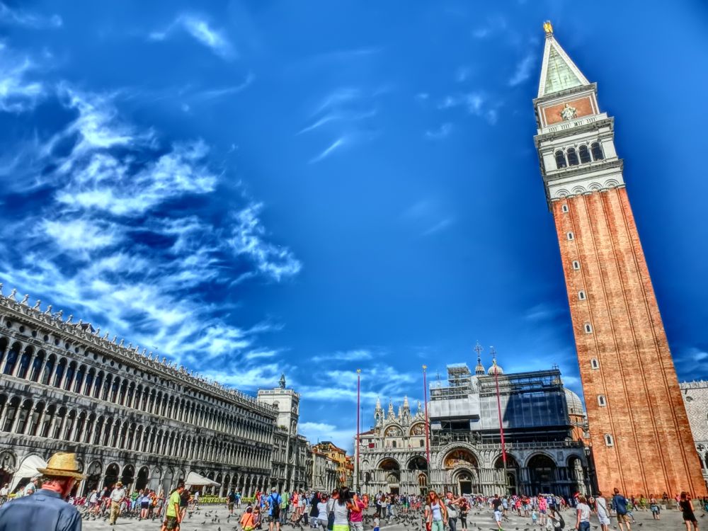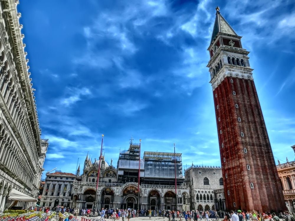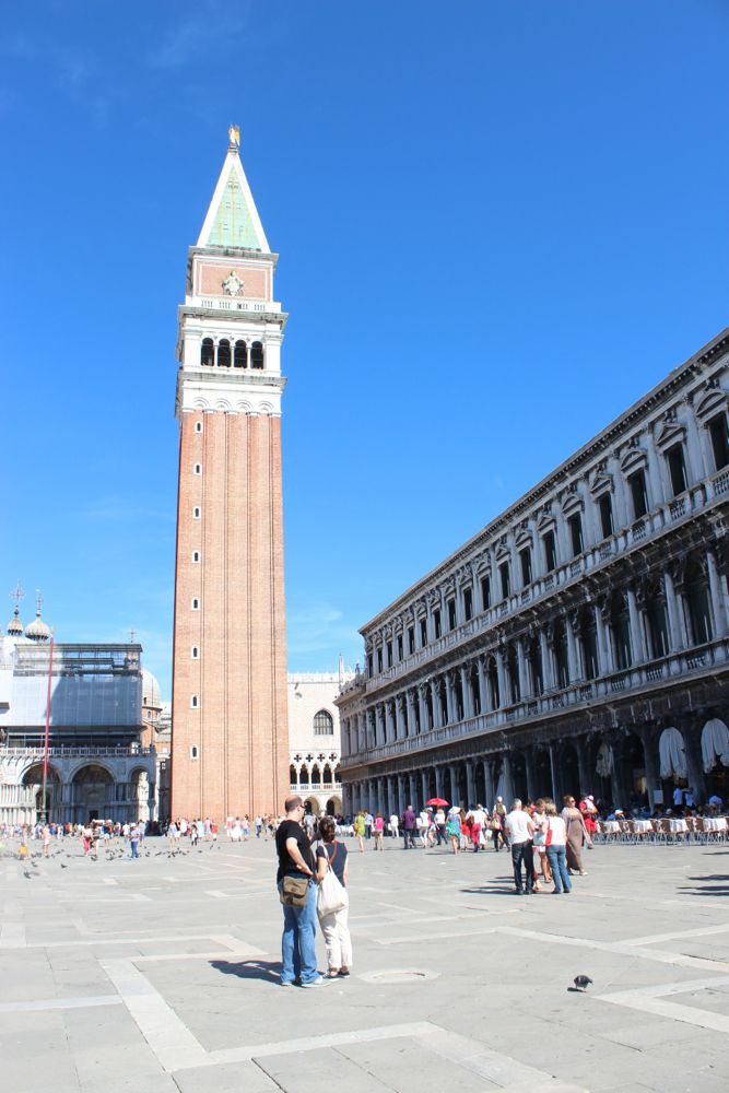 世界に有名な広場は数あれど、美しさでその筆頭とも言ってもいいだろう。L字型の広場で海にも面している。青空を突きさす塔、音楽を奏でるカフェのある回廊、サン・マルコ寺院、ドゥカーレ宮殿が完全なる調和を持って存在している。景観を乱す現代建築が一切ないのがヴェネツィアのすごいところ。 残念ながらサン・マルコ寺院の上部が修復中だった。 海に面する広場から見える景色。対岸の島にあるサン・マジョーレ教会。建築のトリエンナーレが開催中で、杉本博司デザインの茶室が展示されているとことで行きたかったのだけど、今回はいろいろあって行けず。 ドゥカーレ宮殿。ヴェネツィア観光のハイライトだけあって、ものすご人でごった返していた。 サン・マルコ広場から続く3月22日通りには、ルイ・ヴィトン、プラダ、フェラガモ、エトロ、グッチ、エルメス、ディオールと高級ブランド店が並ぶ。どこに行ってもルイ・ヴィトンはさすがの規模だが、イタリアだけあり、プラダ、フェラガモ、グッチも大きい。路上ではどうどうと偽物も売っている。 |