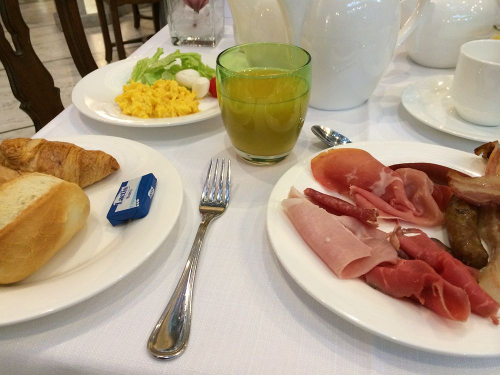 宿泊代には、朝食が入っていなかったのだけれど、レストランの雰囲気も素敵そうだったので、食べることにした。朝食ビュッフェ、23ユーロ。