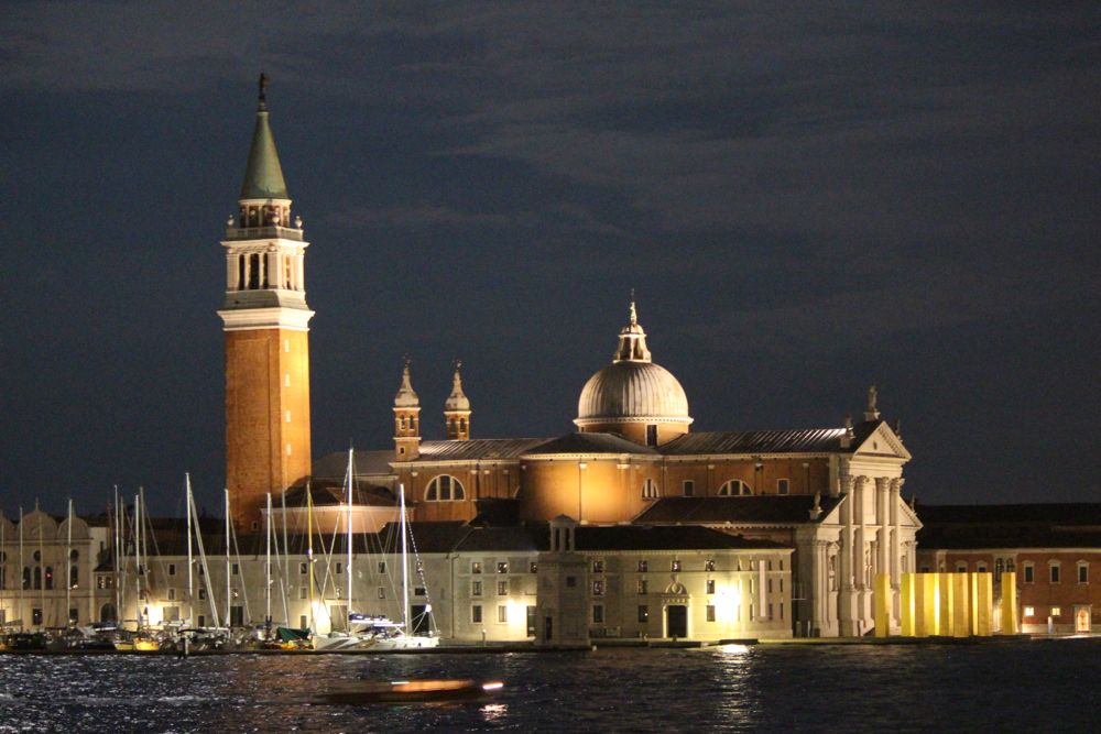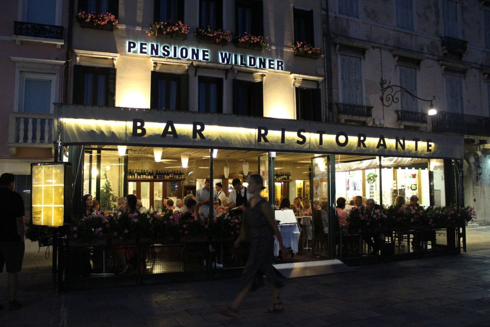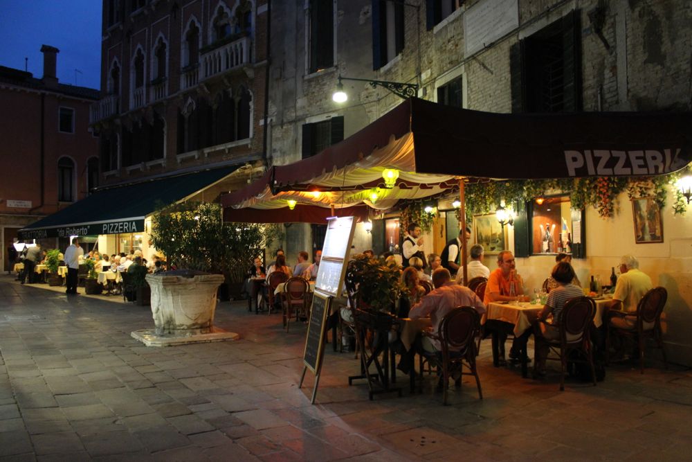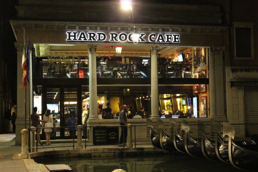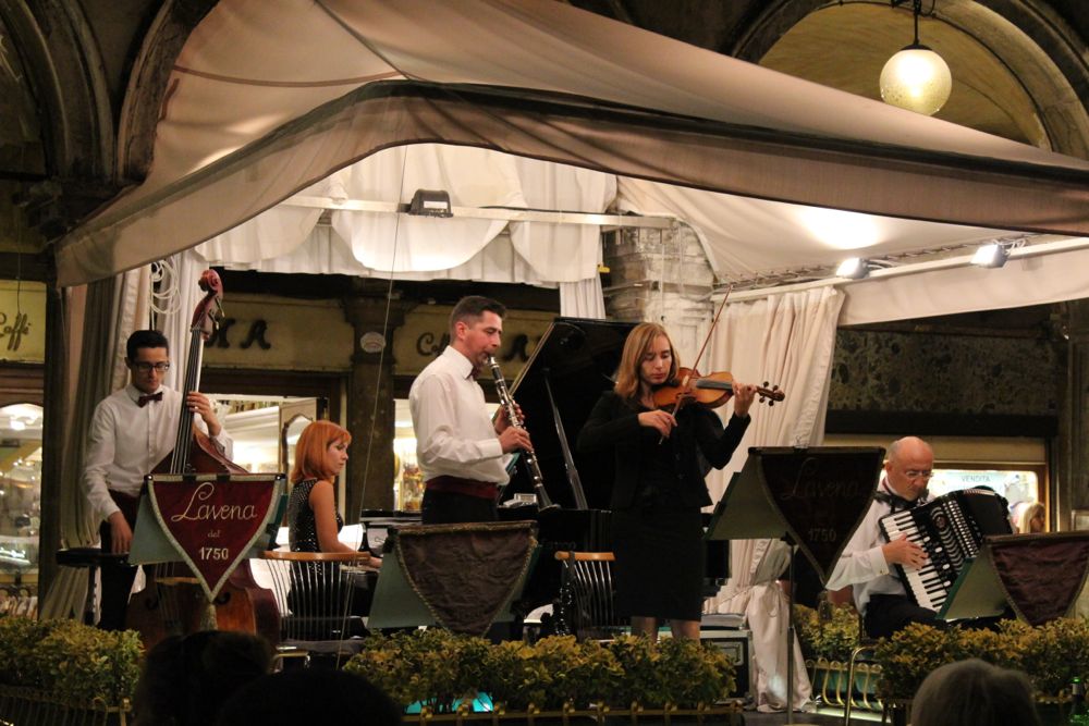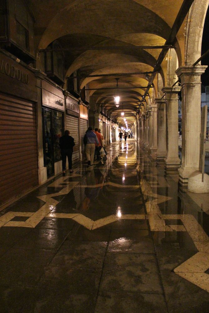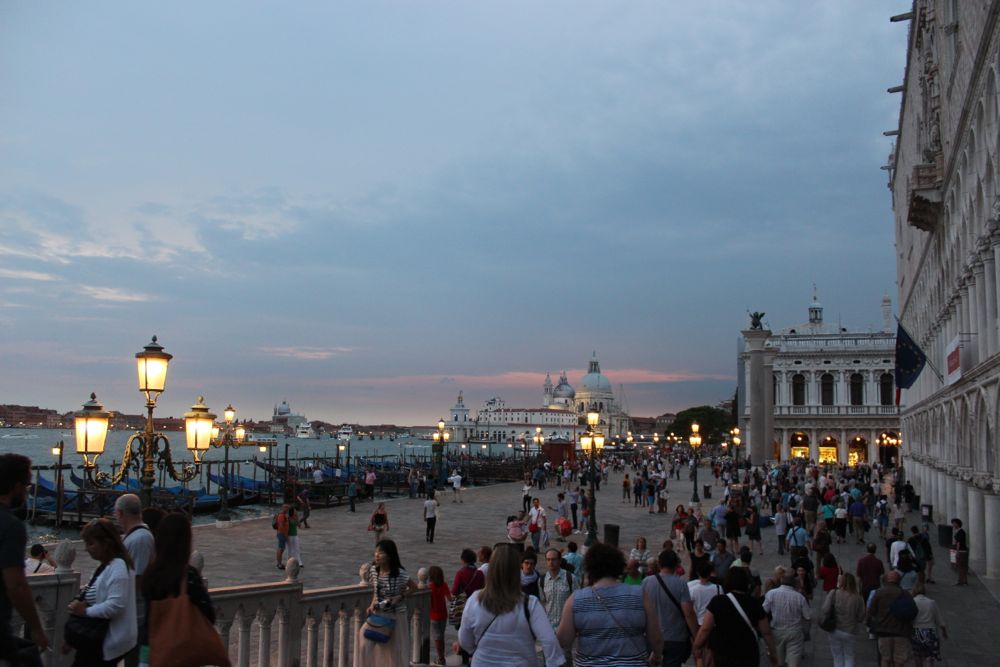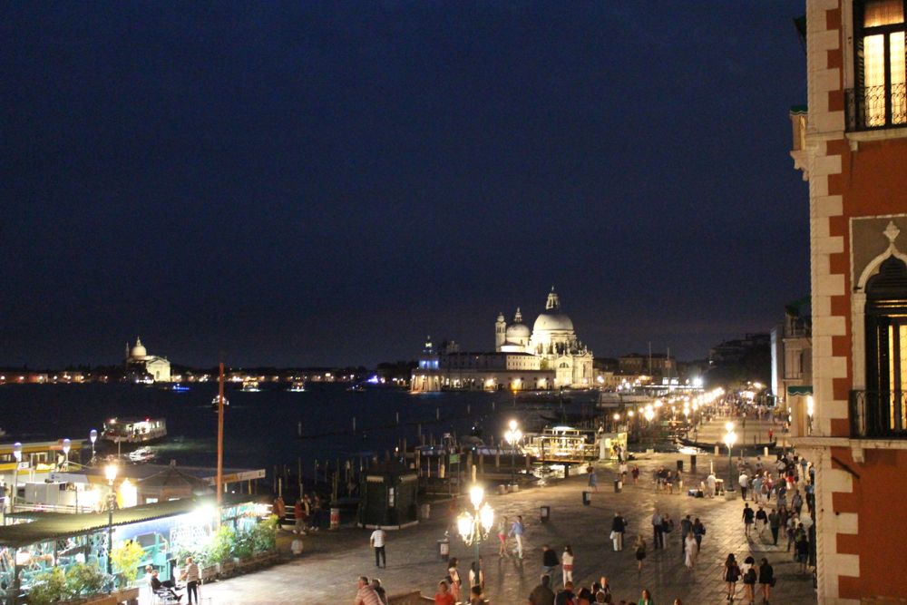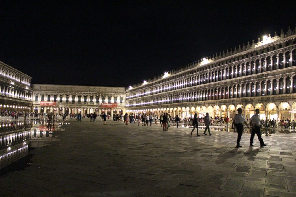 夕暮れ時から、ヴェネツィアの街を散策。まだまだすごい観光客の数。 海に浮かぶヴェネツィアだけにシーフードのお店が多い。 屋外席の店が多い。何故かピザ屋がたくさん並んでいた。 夜のサンマルコ広場。 マンホールのようなところが水があふれて水たまりになっていた。雨が降ったわけではない。夜は、この水たまりに広場の建物と照明が映り込んで綺麗だ。 1720年創業のヴェネツィア最古のカフェ、フローリアン。カフェ・ラテ発祥の店らしい。屋外席では、生演奏があり、大盛り上がり。 同じ生演奏のカフェが反対側にもう一軒あり、互いに競いあっていた。 広場の回廊は、アーケードになっていて観光客目当てのたくさんのお店がある。 夜遅くまで観光客がいるので、開いている店もいくつかある。 ハードロック・カフェもちょっと洒落ている。店前の運河には、ゴンドラがたくさん係留されている。 ホテルに戻って、部屋の窓を開けるとこの景色。ロマンチック過ぎるぜ。 |