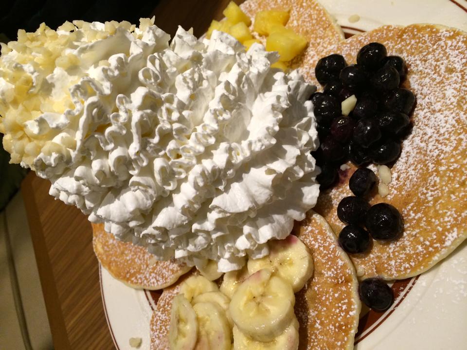 日本でもだいぶ店舗が増えてきた。ハワイに行った時、有名だから一度は訪れたいと思いながらも機会がなく、日本に出来たがどこも行列なので避けていた。銀座のキラリト内にもオープンし、やはり原宿などよりは列は短い。それでも並んでいるから行かなかったけど、21時頃行ったら空いていたので入ってみた。 クリームの量がすごいけど、それほどしつこくない。これにさらにシロップなどをかけて食べるのも可。 ボリュームと見た目のインパクトは確かにあるね。しかし、味は、別に・・・。やはり、並んでまで食べるべきものはないな。まあ、普通のパンケーキとフルーツだ。 パンケーキ以外にもハンバーガーやステーキがあり、むしろそちらの方での利用が良かったかも。 Eggs 'n Things 銀座店 東京都中央区銀座1-8-19 キラリトギンザ4階 http://www.eggsnthingsjapan.com/