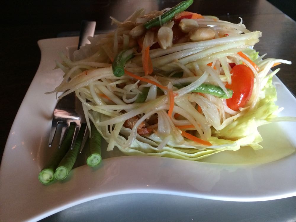 青パパイヤのサラダ。これなら日本でも食べたことある。シャキシャキしていい感じだった。おまけに赤くないし、これなら大丈夫と注文。食べてみたらびっくりするほど辛かった。申し訳ないけど一口しか食べられず。全く辛そうに見えないのに、いったい何で味付けしてあるんだろう? あまりにパパイヤ・サラダが辛かったので、酢豚風な料理に逃げてしまった。そしたら、普通に酢豚だった。 お店の人に辛くないタイ料理をおすすめしてもらった。これも日本で食べたことある。これ、美味しい。でも、茗荷らしきものが、合わないと思うんだけどなあ。 Mango Tree Bistro Central World Tel. 095-865-88837th Fl., Central World, A706, |