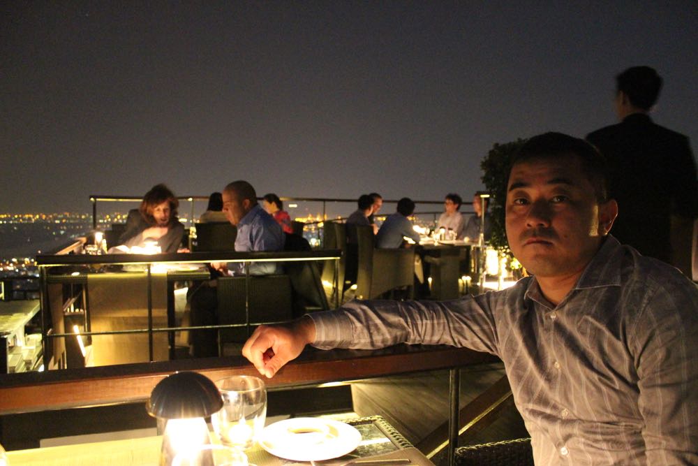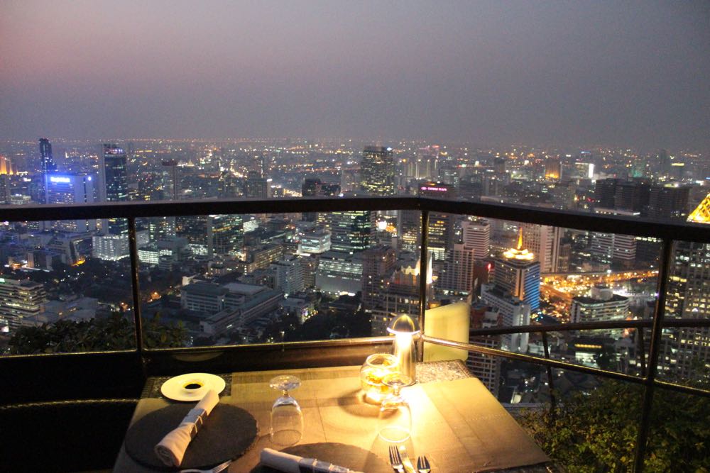 バンコク市内には、高層ビルの屋上をオープンエアのレストランにしているものが多い。映画「ハングオーバー2」にも出てきた世界最高所(247メートル)にあるオープンエアーのレストランのシロッコに行きたかったのだけど、電話してみたら2週間先まで予約でいっぱいと言われてしまった。そこなら宿泊しているホテルからも歩いて行けたので残念。 シロッコができるまで市内最高所のレストランだったヴァーティゴに電話したら、こちら予約OKだった。バンコクに来たら一度は屋上レストランに行ってみたかったので良かった。 店名のヴァーティゴVertigoは、英語で目眩という意味。ヒッチコックの映画「めまい」なんというのもありましたね。高さ197メートルでバンコクの街を見下ろせる。屋上のオープンエアーレストラン、バンコクにはたくさんあるけど、雨期などはどうしているんですかね。 南国バンコクでもさすがに涼しい。またドレスコートもあり、短パン、サンダル、Tシャツ、スポーツウェアは入店を断られるみたい。 高層階にあるヴァーティゴだが、値段もくらくらめまいがするほど高い。キールロワイヤルをグラスで頼もうとしたら一杯6000円、ボトルワインも数万円クラスからでちょっと断念。ペリエとタイのビールに。 前菜。 和牛のカルパッチョ。高いと思ったらトリュフが載っているよ。 ロブスターのビスク。いいお味だった。 メインの前のシャーベット。 和牛のステーキ。柔らくて美味しかった。ソースも日本人好みかな。 デザートのマンゴーチーズケーキ。こちらも美味しかった。これでお酒も入れず一人2万円ほど。とっても美味しかったけど、やっぱり値段でもくらくらしちゃう。 予約せずに入れるバーコーナーもあるが、そちらもお客さんでいっぱい。 ヴァーティゴは、バンヤンツリーホテルの最上階にある。 Vertigo 21/100 South Sathon Road Sathon, Bangkok 10120, Thailand