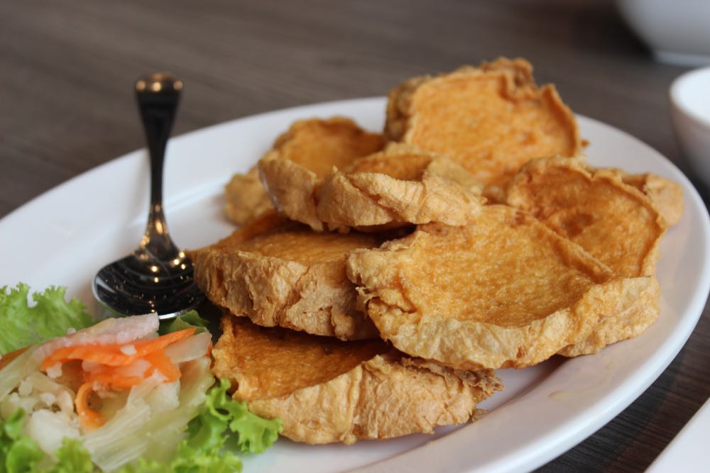 会社の同僚が前週にバンコクに行っていて、このお店を紹介していたので行ってみた。このプーポッパンカリーで有名なお店なんだそう。メニューで写真を見て、赤かったので店員に「辛くしないことできますか?」と聞いたら、「全然辛くないですよー」と言われてしまった。 蟹のカレーなんだけど、確かに甘くて全然辛くない。有名なるのも分かるね、とっても美味しい。 エビのすり身の揚げ。これも大好き。スモールサイズを頼んだにこんなにたくさん。 空芯菜。ガーリックがきいてこちらも美味。 Somboon Seafood バンコク市内に7店舗ある。 |