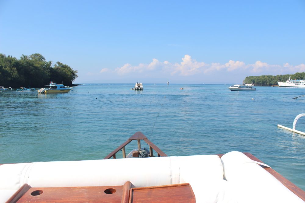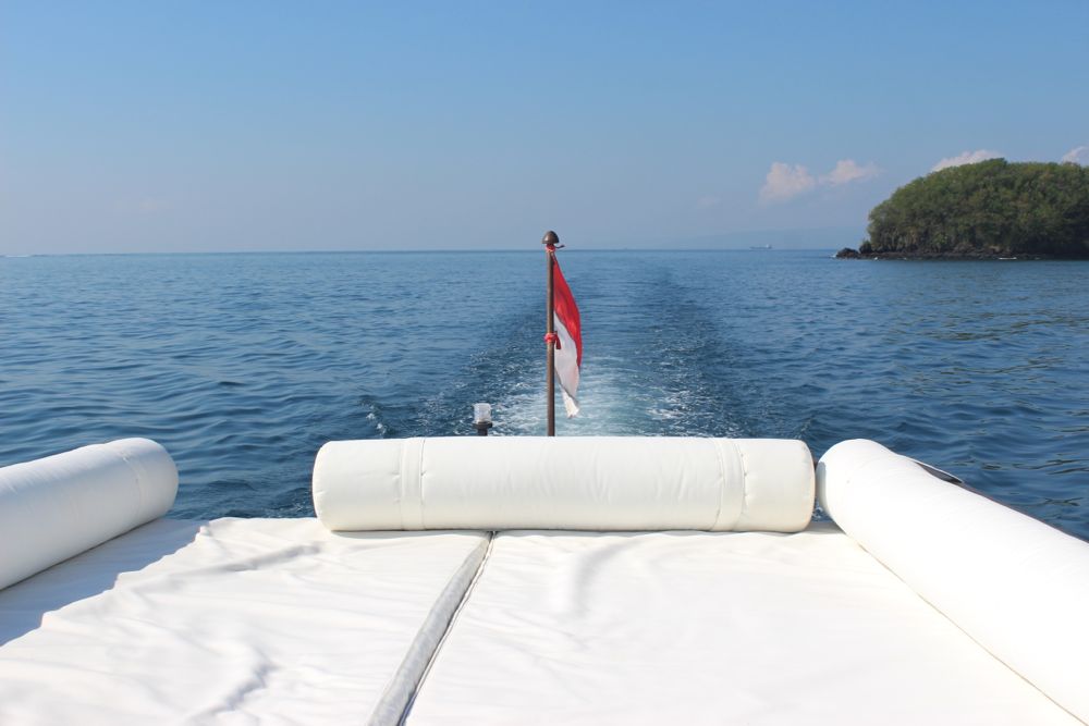 午前中、アマンキラ所有の船でクルージングへ。ホテルから車で近くの港まで送ってもらい、そこから乗船。他の人のブログ記事などで、二組から三組同乗というのを読んだことがあったけど、今回は他の客は誰もおらず貸し切り状態。二階がサンデッキのようになっている。白い柔らかめのクッションが敷き詰められていて、横になって眺める青空はまさに自分に覆い被さってくるかのようだった。ただ、かなり暑かったけどね。船の一階は、ちょっと揺れが強いので船酔いしそうになった。